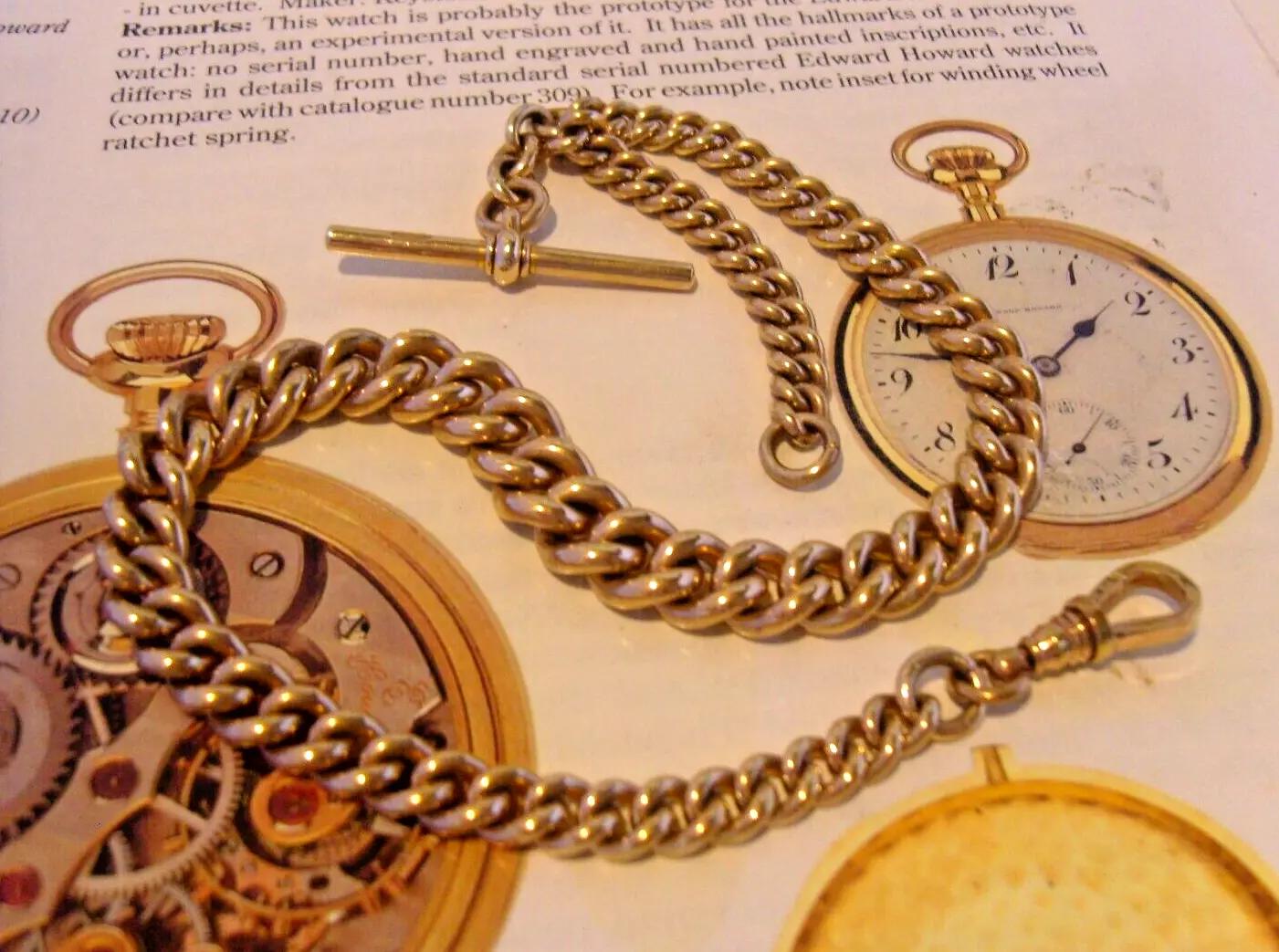 Pocket Watch Chain 18ct Rolled Gold Antique 1890s Victorian Albert & T Bar 51.6 Grams