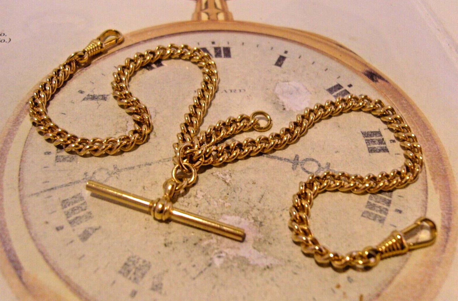 Pocket Watch Chain 1970s Vintage 12ct Gold Plated Double Albert With Sliding T Bar