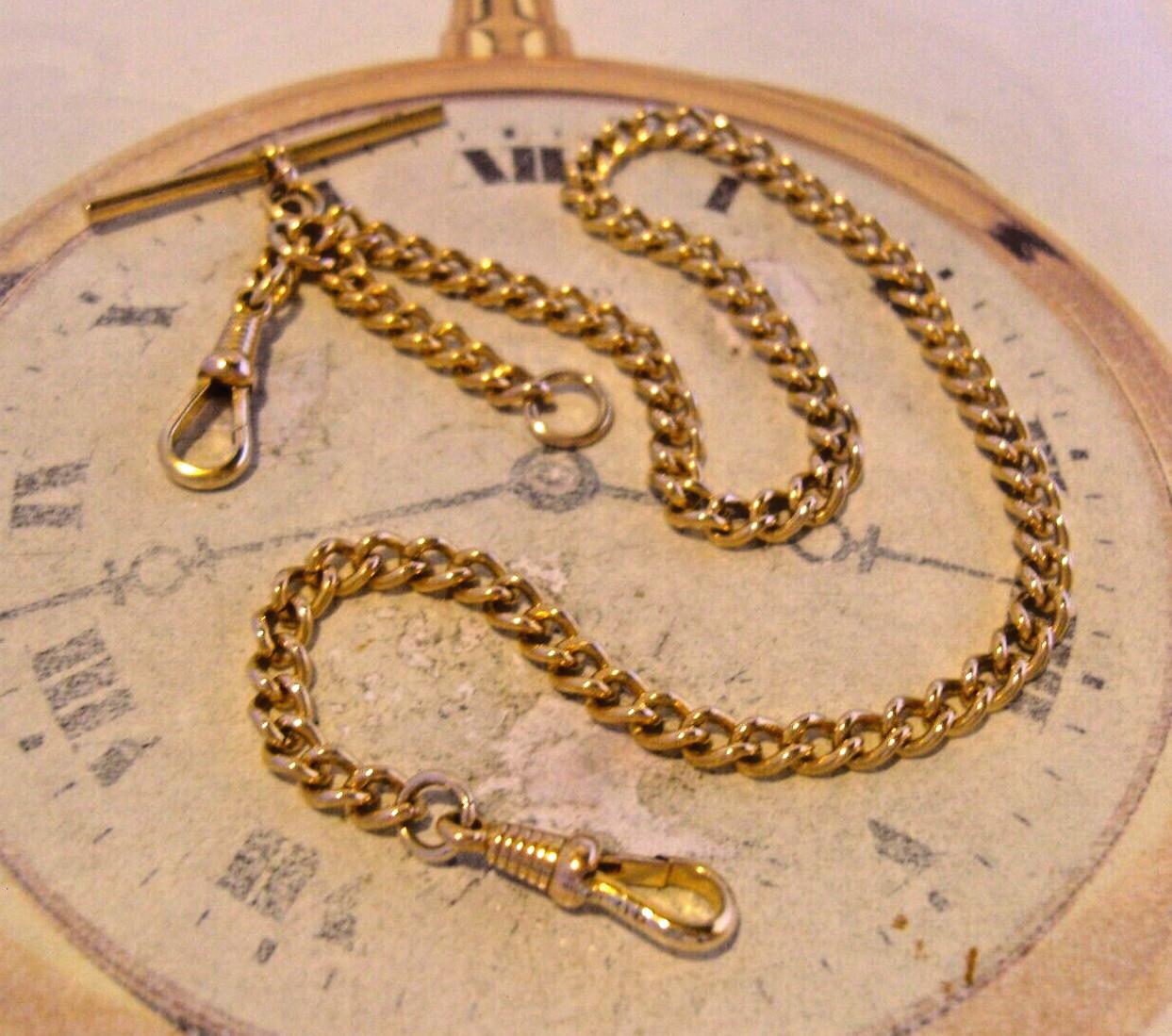 Pocket Watch Chain 1970s Vintage 12ct Rolled Gold Curb Link Albert With Sliding T Bar