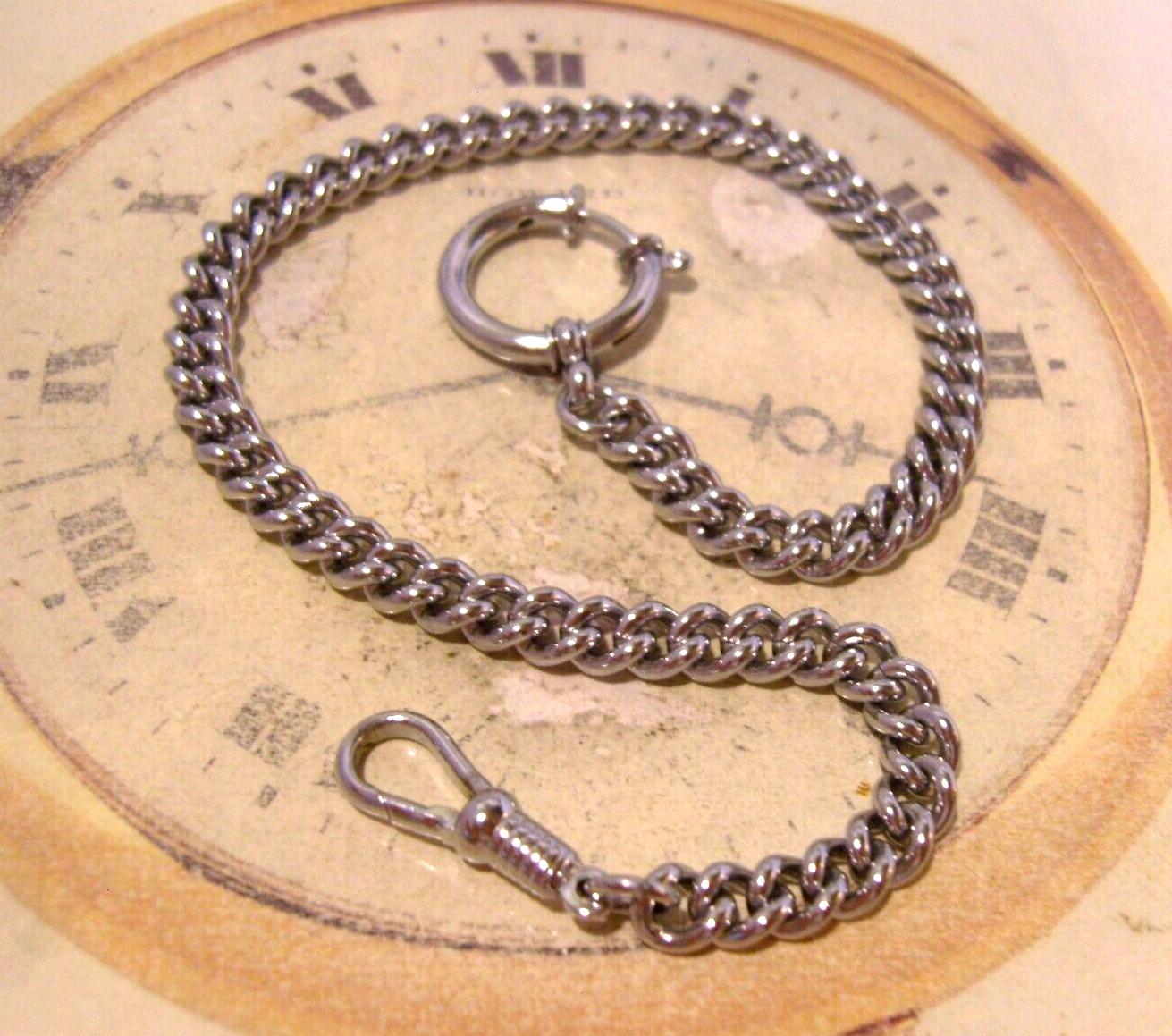 Pocket Watch Chain 1970s Vintage Silver Chrome Curb Link Albert & Swivel Bolt Ring