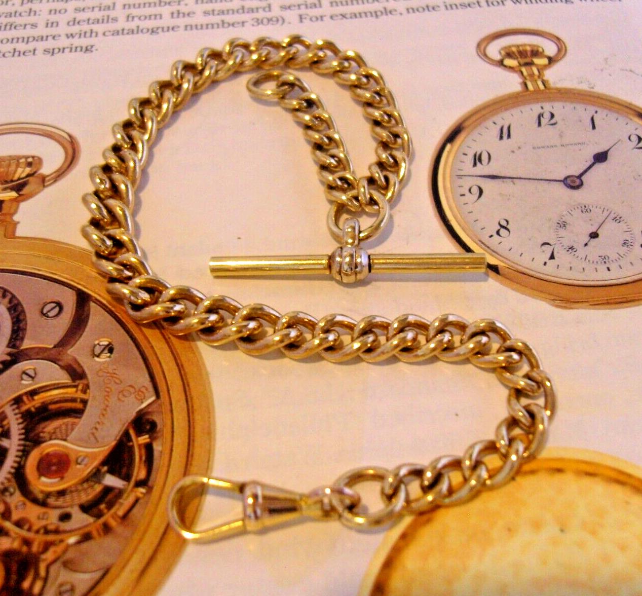 Pocket Watch Chain 9ct Rolled Gold 1920s Antique Graduated Albert With T Bar