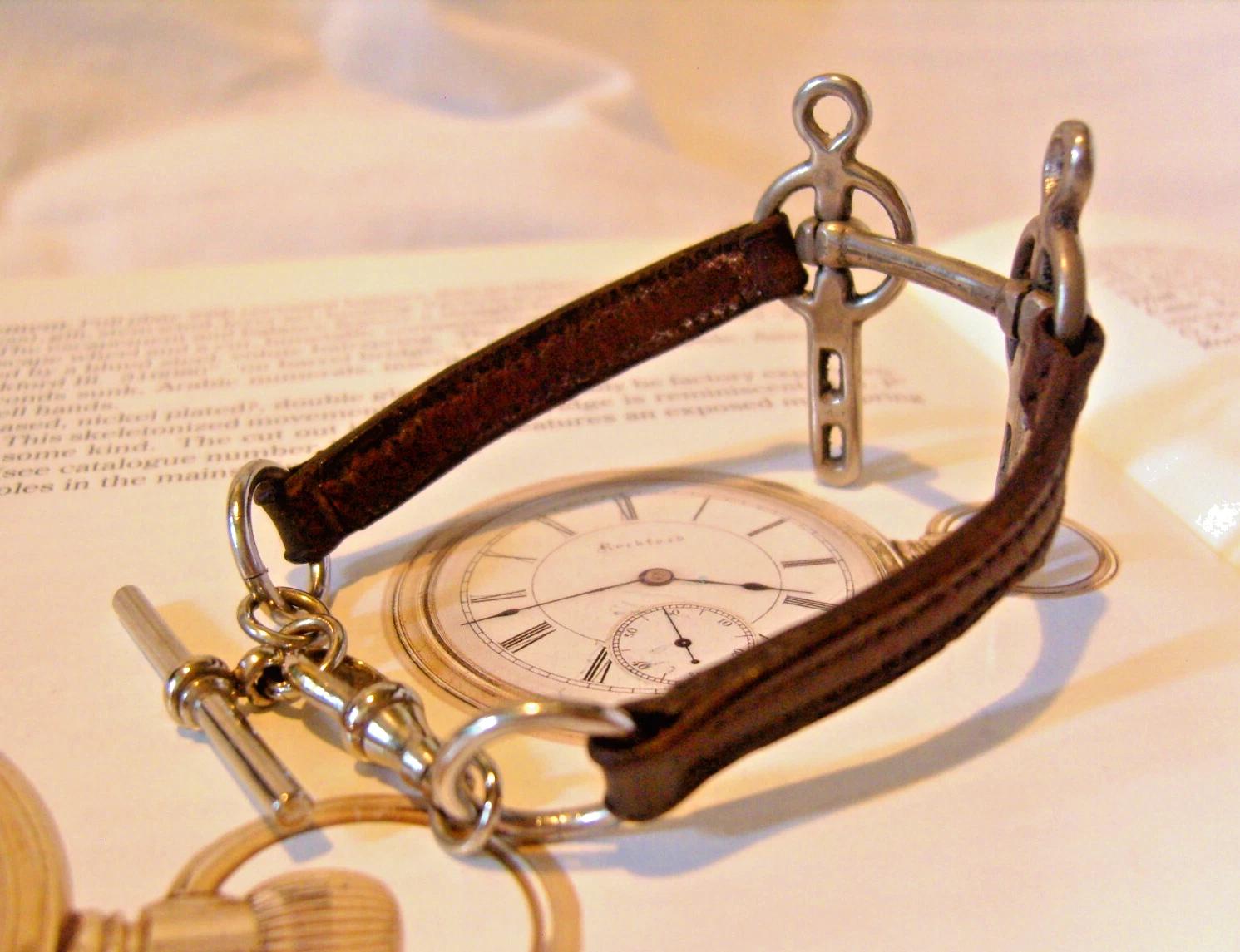 Pocket Watch Chain Albert 1940s Brown Leather With Horse Liverpool Driving Bit
