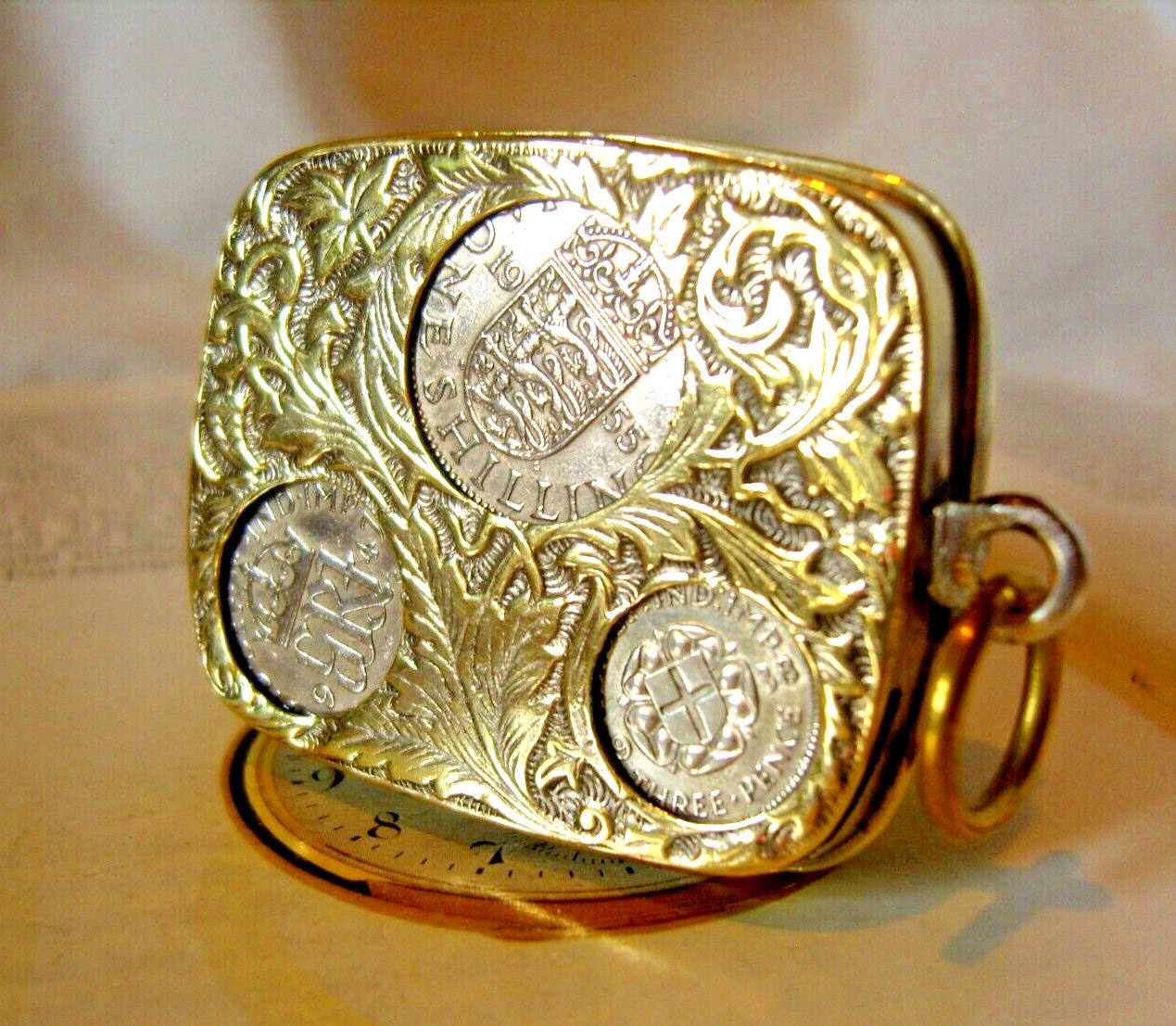 Pocket Watch Chain Coin Case Fob Antique J W Benson 1920s with Coins