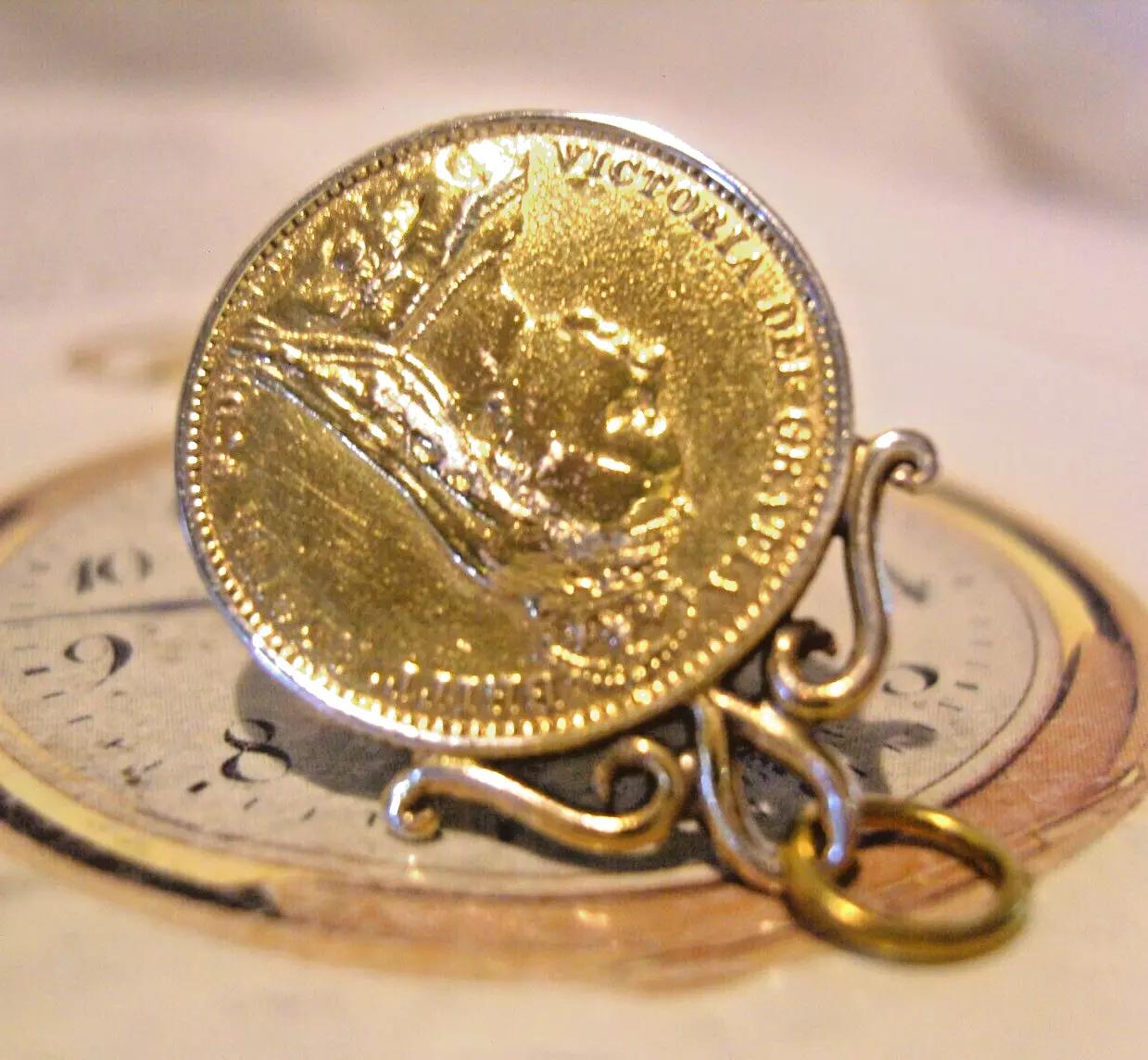 Pocket Watch Chain Coin Fob 1887 Queen Victoria Golden Jubilee Commemorative