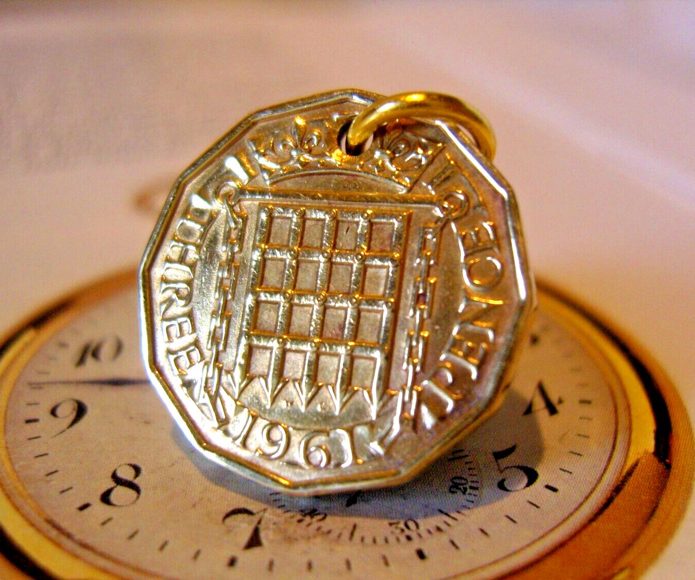 Pocket Watch Chain Coin Fob 1961 Vintage Three Pence Thrupenny Bit English Fob