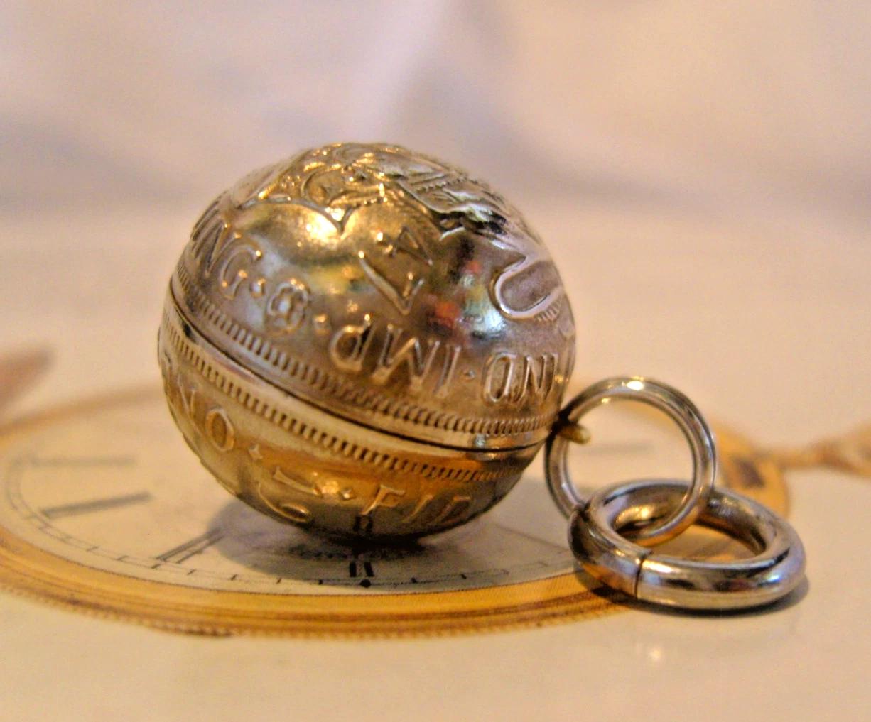 Vintage highly unusual domed original 1947 and 1949 lucky English Shillings coin fob for a Gentleman's pocket watch chain.