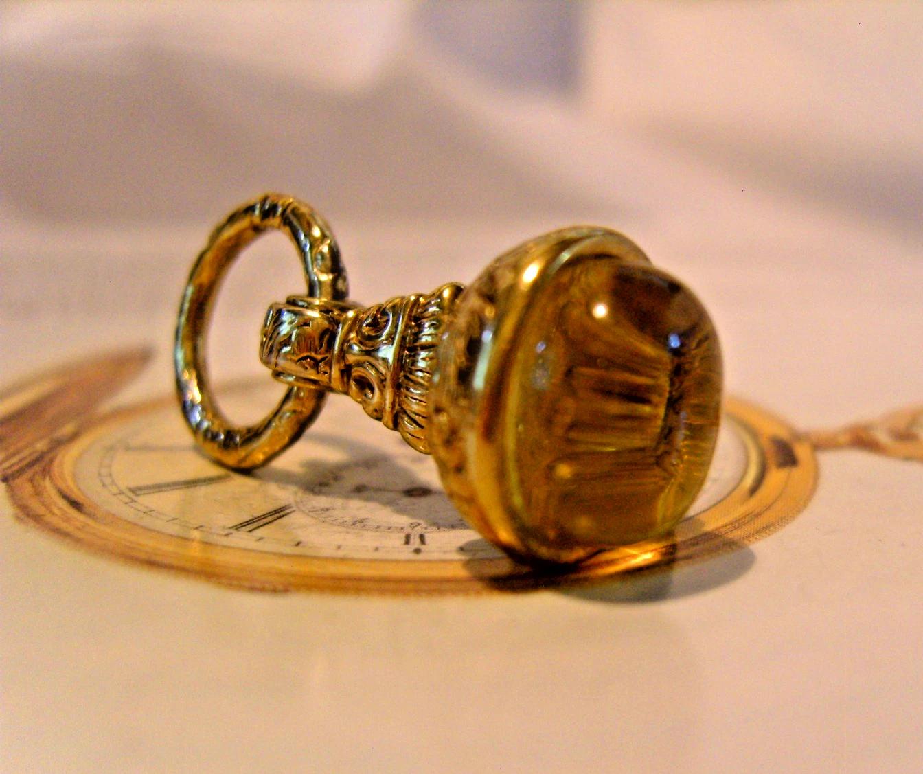 Pocket Watch Chain Fob 10ct Gold Filled Large Victorian Citrine Glass