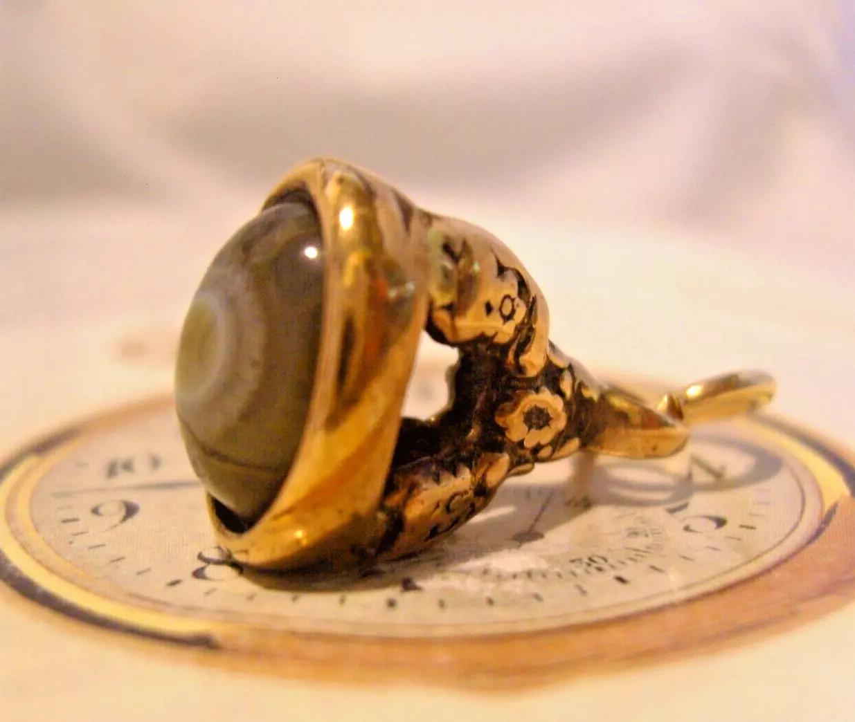 Pocket Watch Chain Fob 12ct Rose Gold Filled & Bullseye Agate 1950s