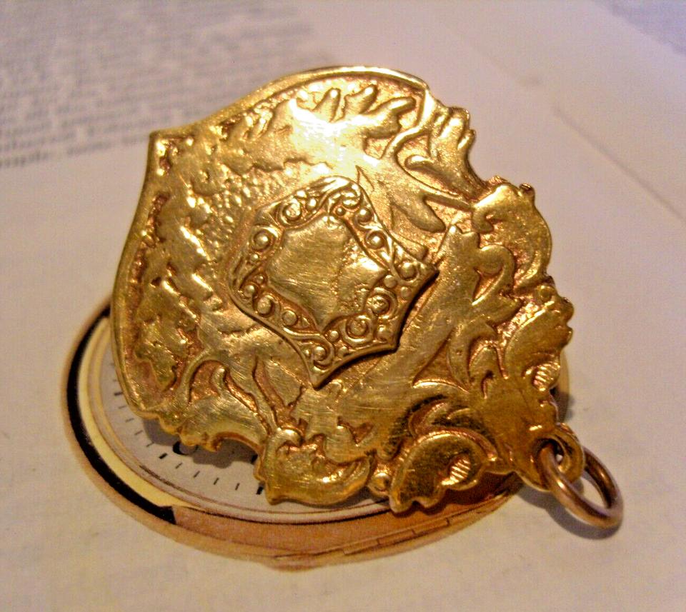 Pocket Watch Chain Fob 18ct Gold Plated Victorian 1890s Large Antique Shield Fob