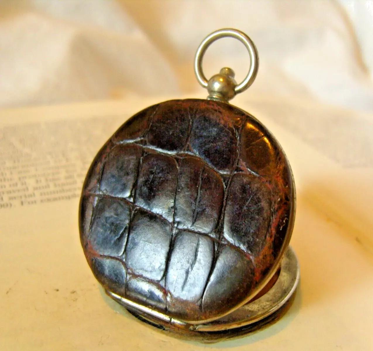Pocket Watch Chain Fob 1920s Misers Purse Antique Leather Large Coin Case