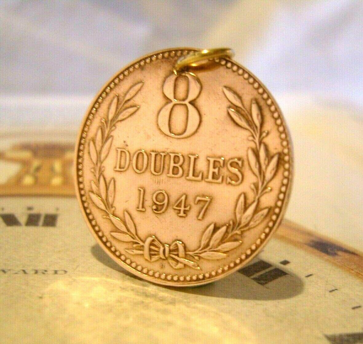 Pocket Watch Chain Fob 1947 Guernesey 8 Double Large Old Coin Fob