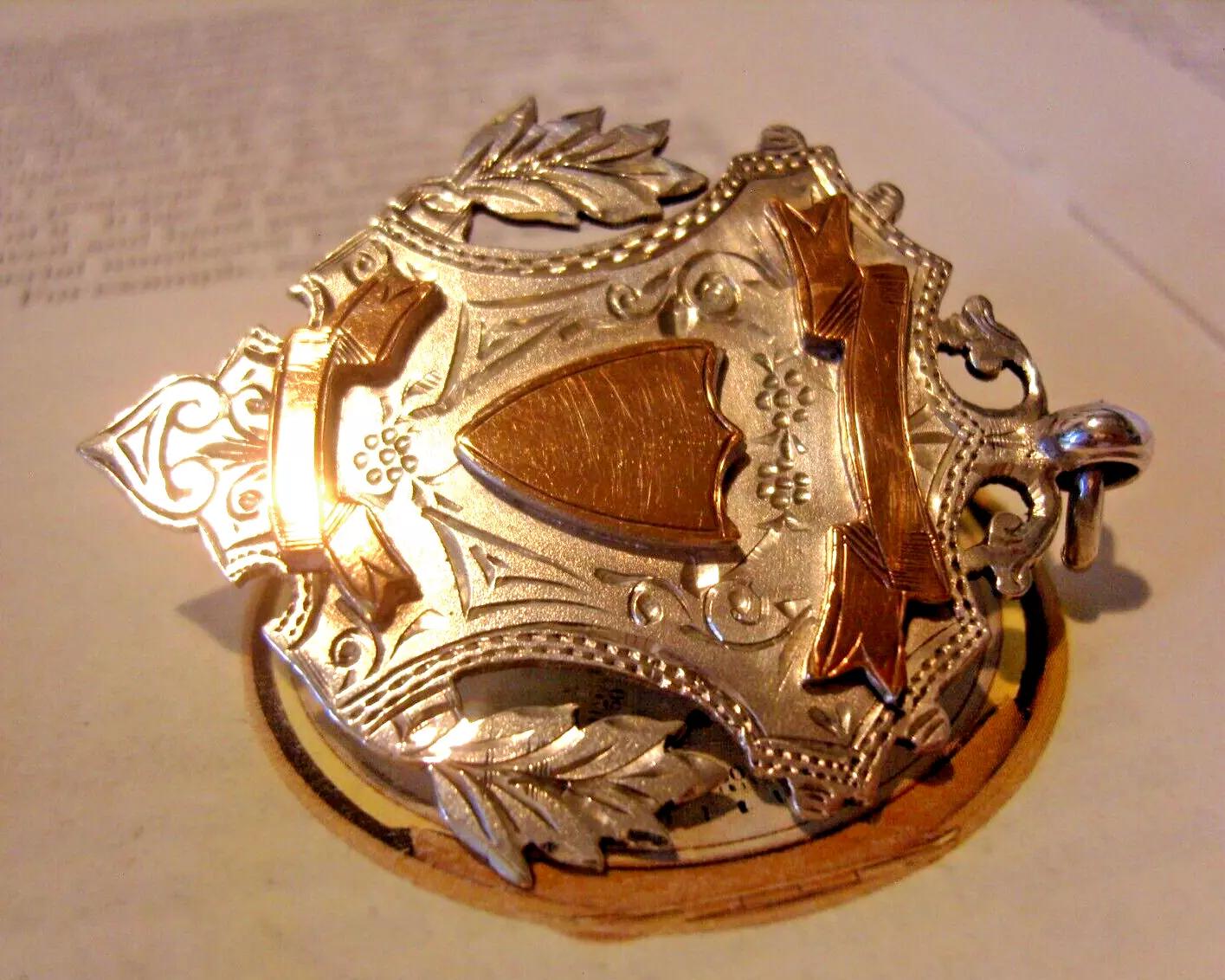 Pocket Watch Chain Fob Enormous Sterling Silver & 12ct Rose Gold Filled 1900