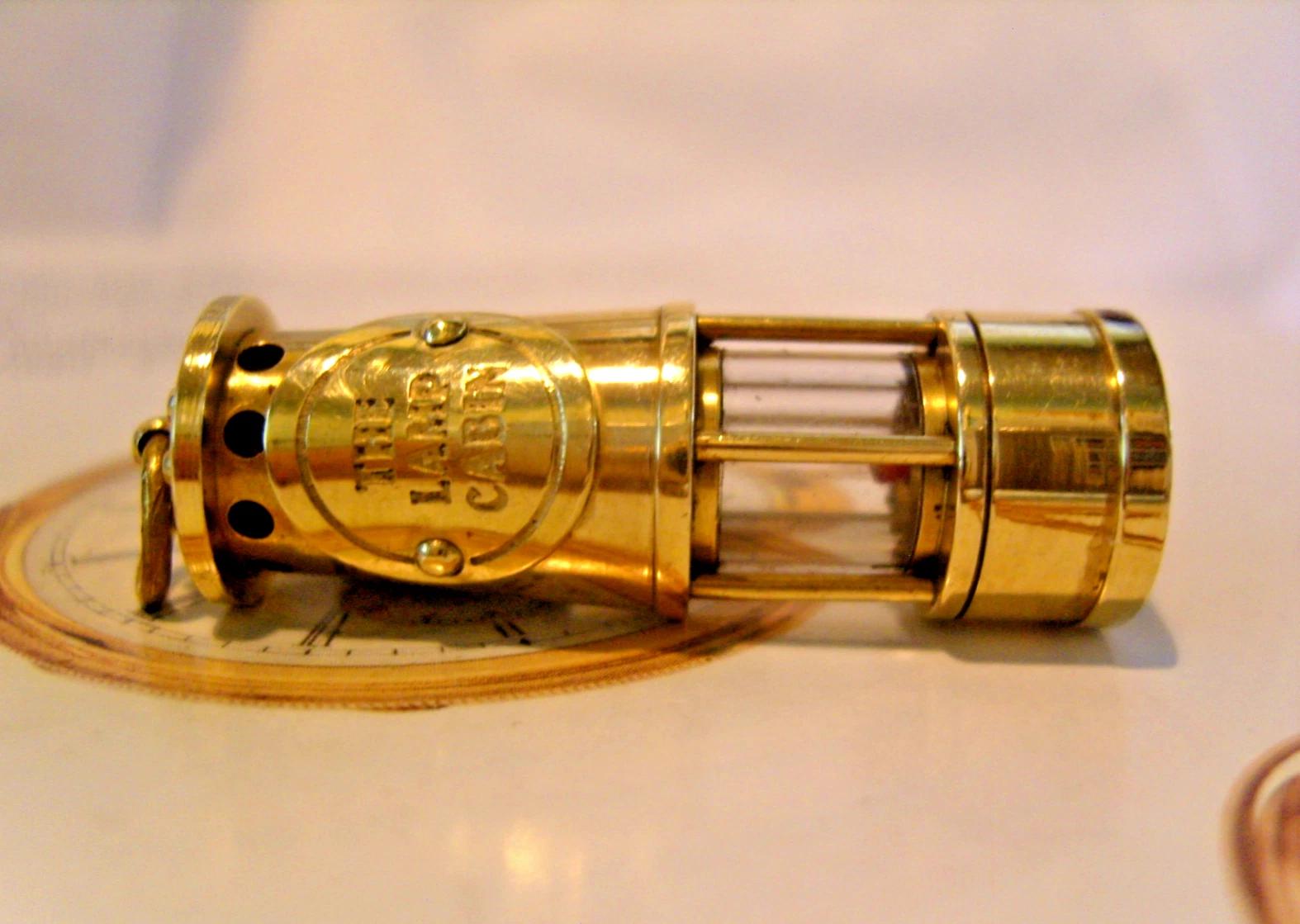 Large and highly detailed brass Miners lamp fob for a Gentleman's pocket watch chain.