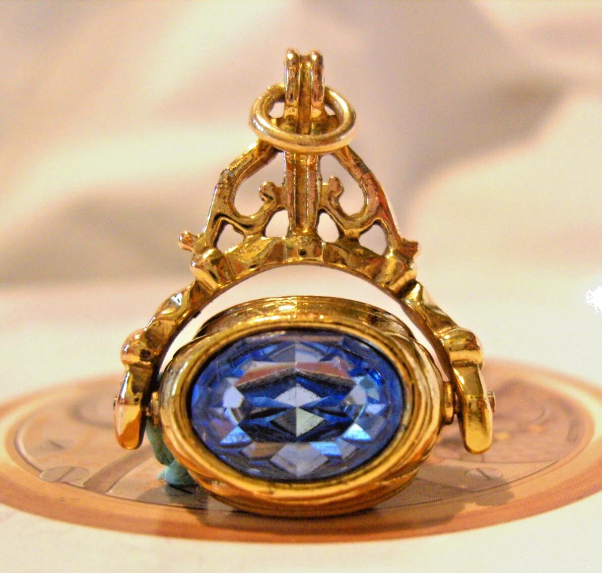 Pocket Watch Chain Fob Spinner 12ct Gold Plated Vintage 1970s Glass Fob