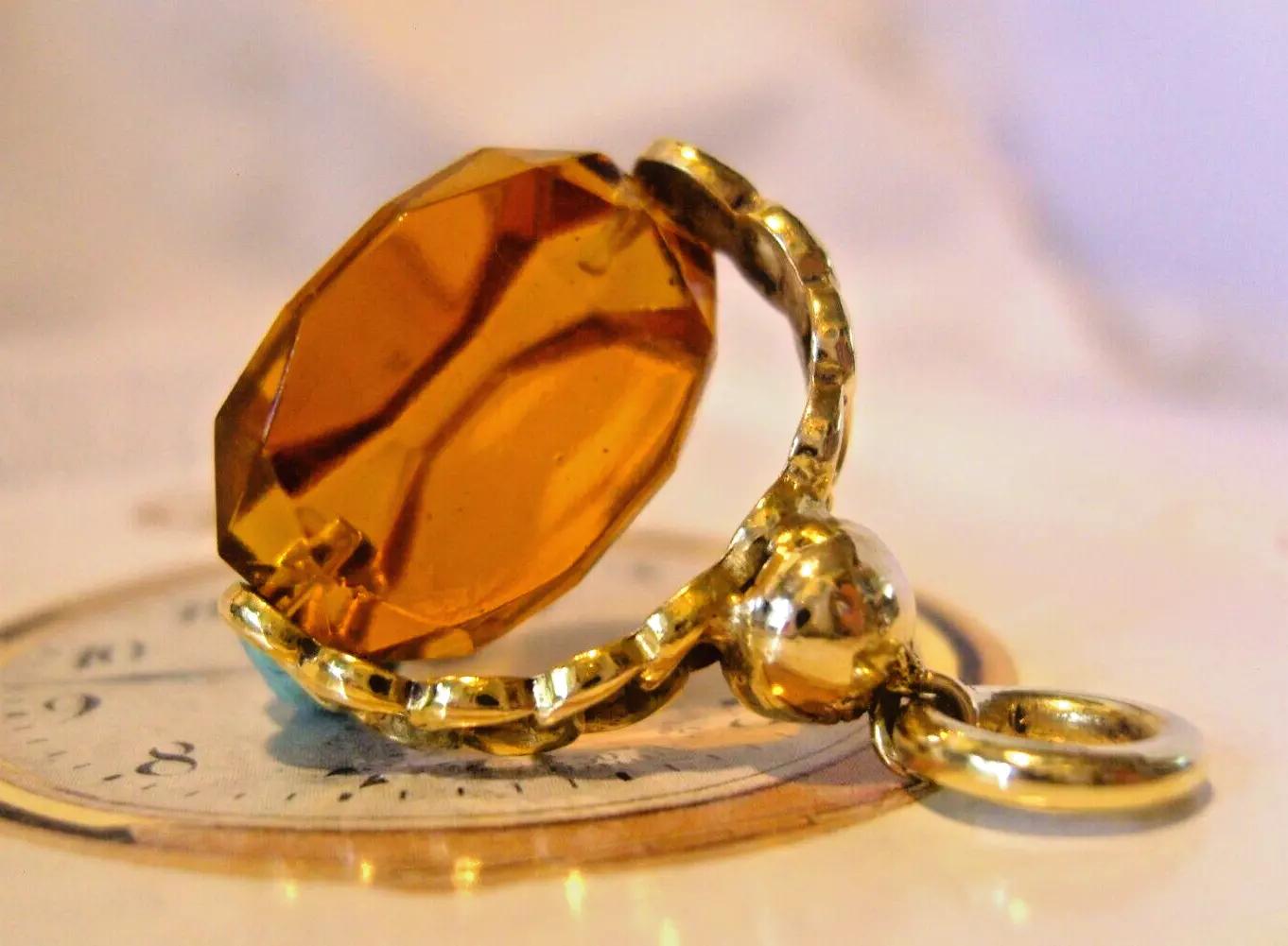 Pocket Watch Chain Fob Spinner 1890s Victorian 18ct Gold Filled & Citrine Glass