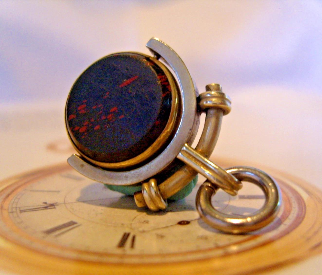 Pocket Watch Chain Fob Spinner Albo Silver & Bloodstone 1890s