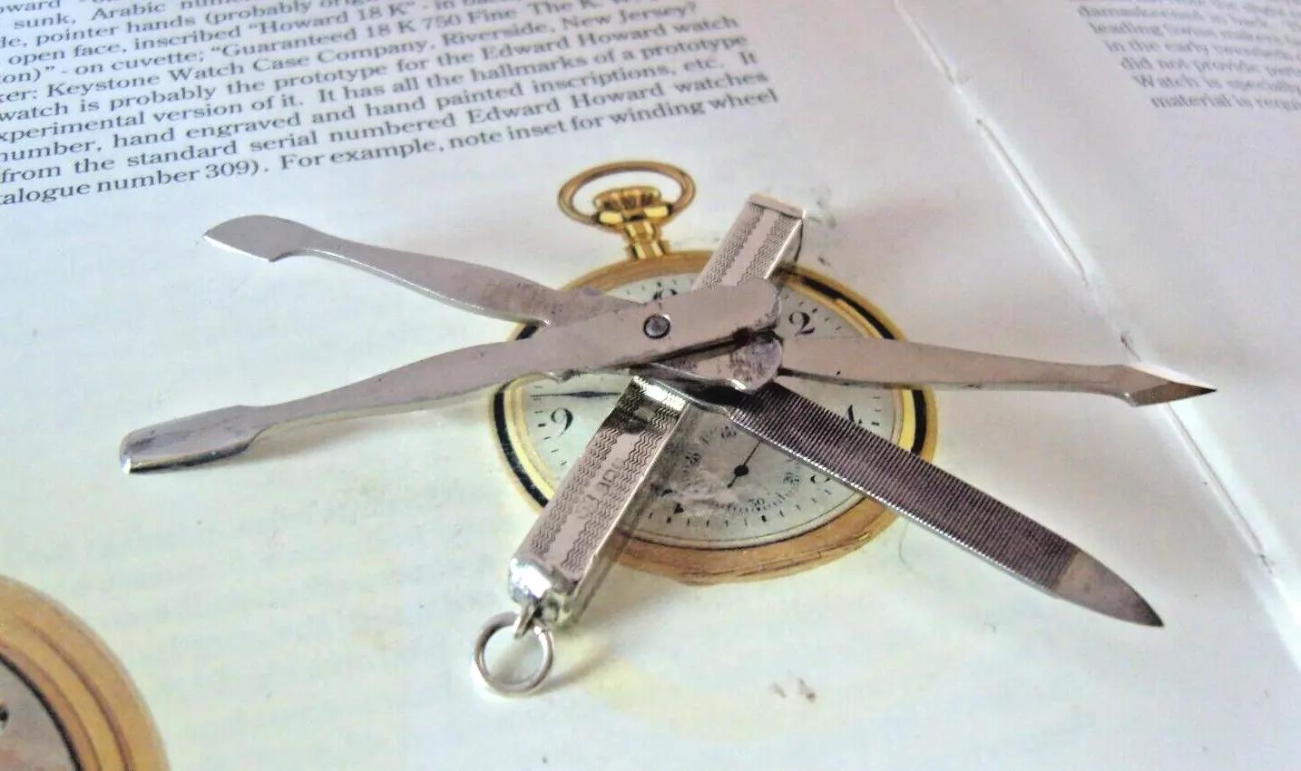 Pocket Watch Chain Fob Sterling Silver 1925 Gentlemans Antique Manicure Set