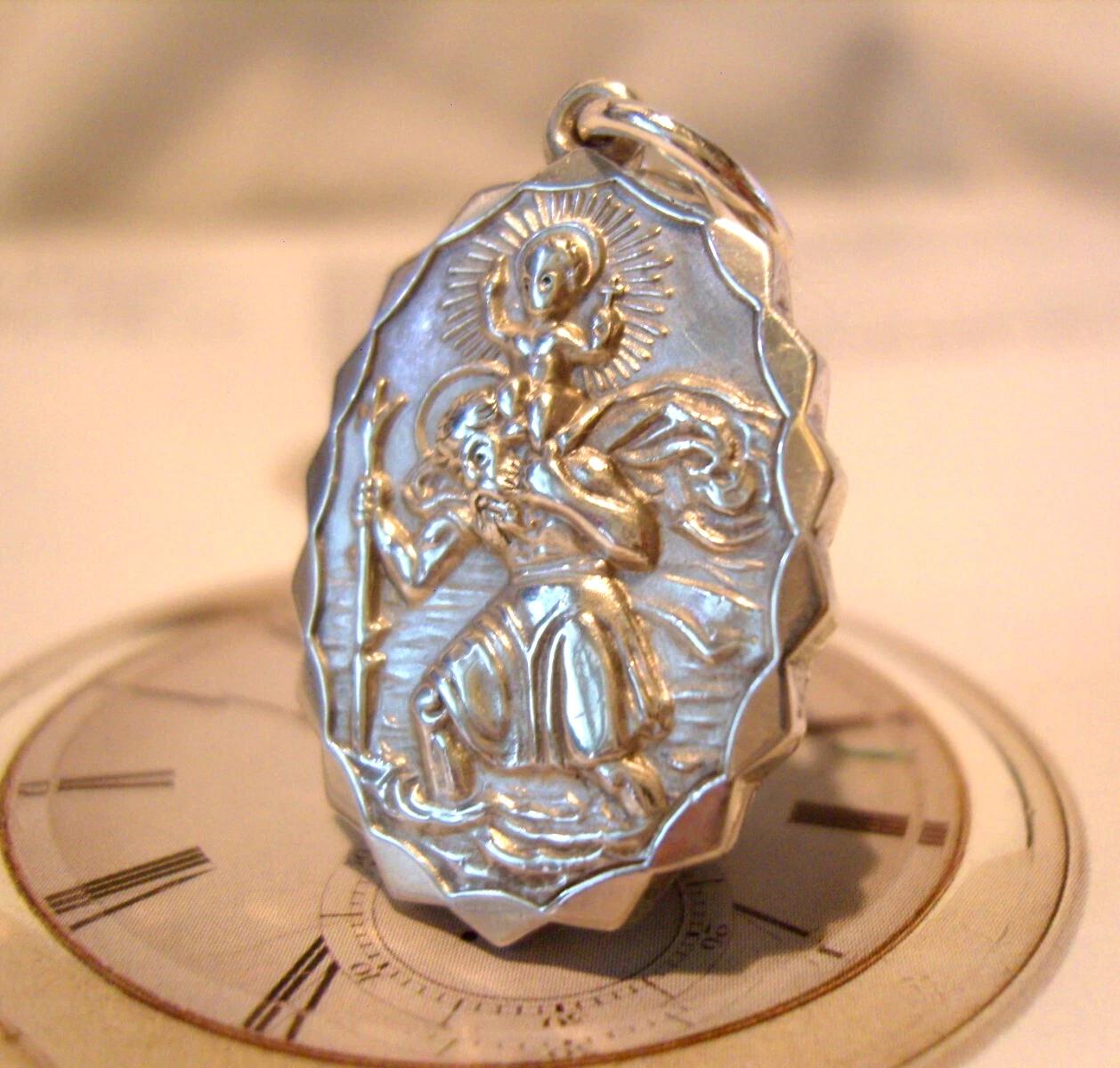 Pocket Watch Chain Fob Sterling Silver St Christopher 1971 Large Vintage Fob