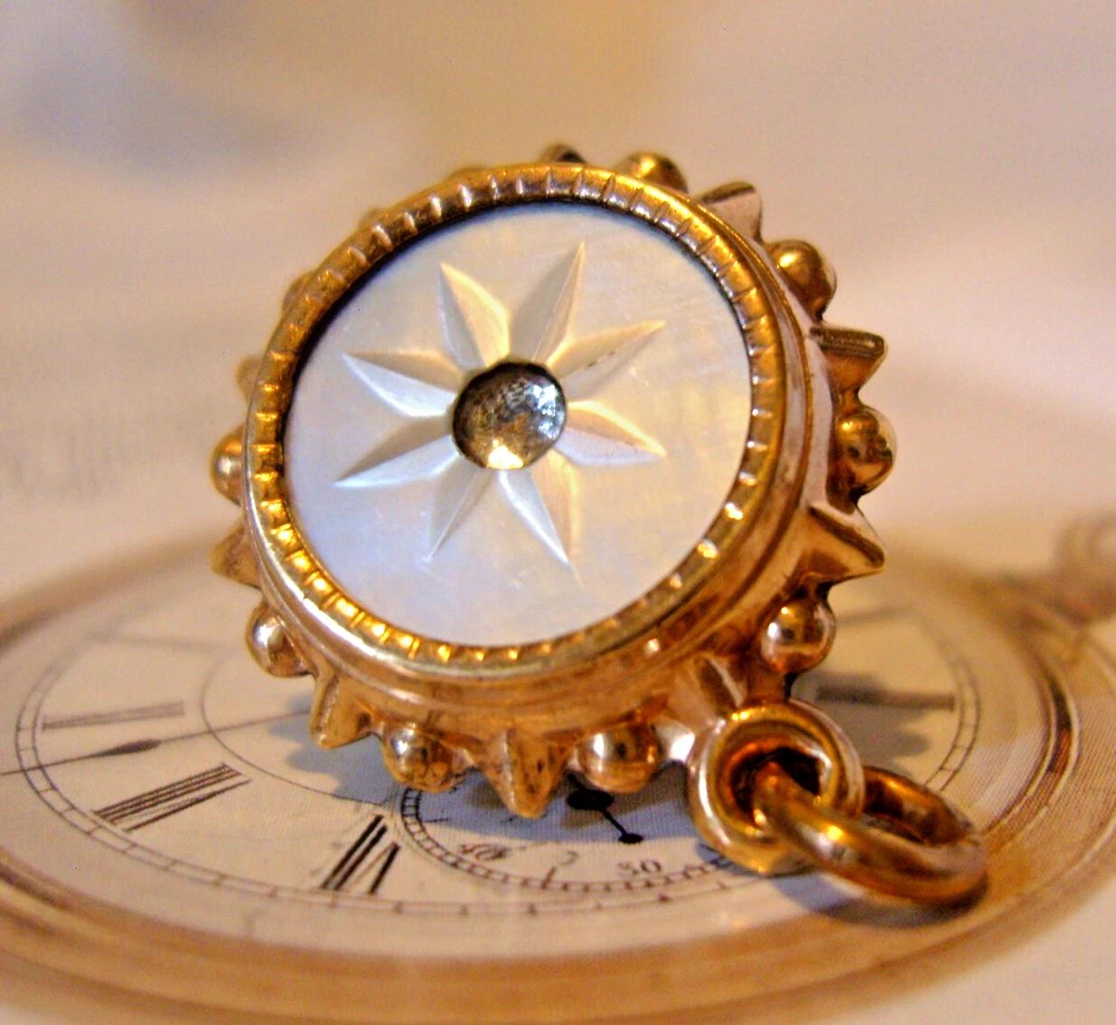 Pocket Watch Chain Fob Victorian 10ct Rose Gold Filled Mop & Carnelian 1890s