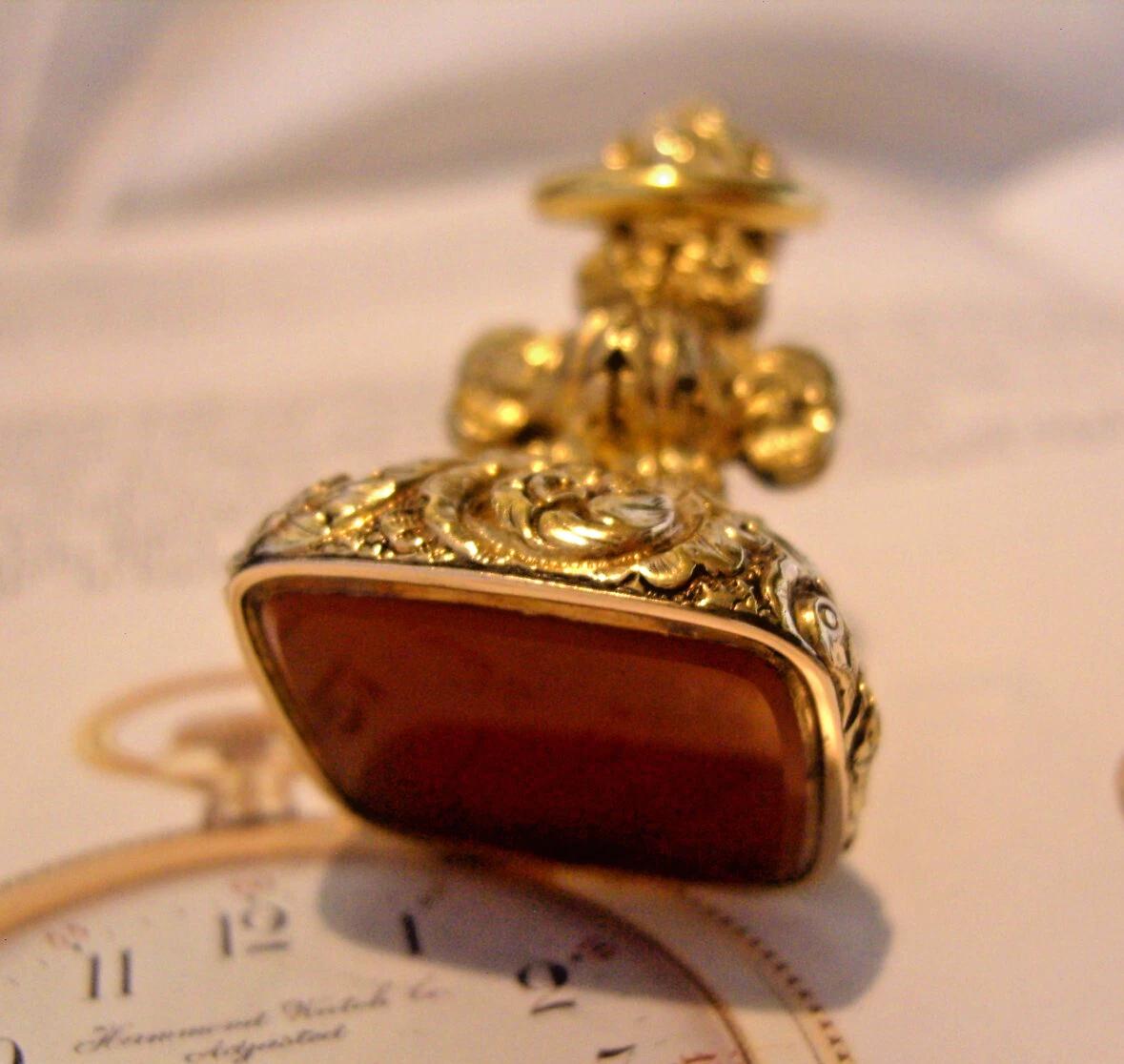 Pocket Watch Chain Fob Victorian 12ct Gold Filled & Carnelian Huge 1890s Fob