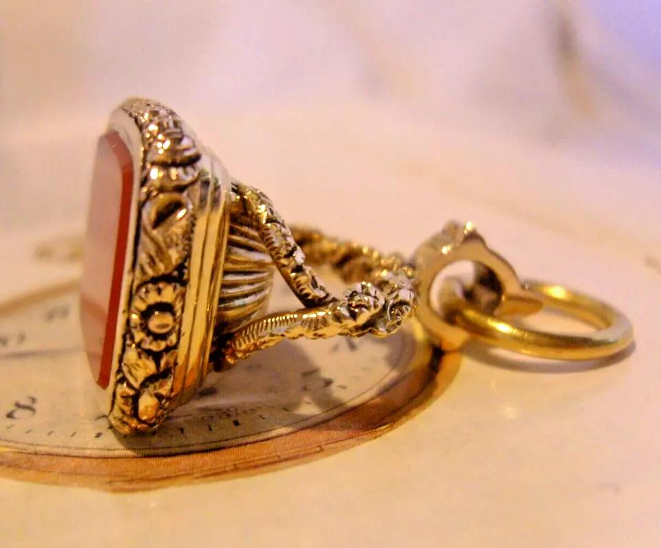 Pocket Watch Chain Fob Victorian 12ct Gold Filled & Carnelian Large 1890s Fob