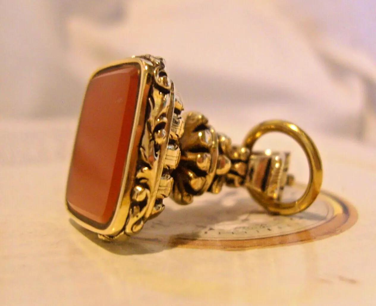 Pocket Watch Chain Fob Victorian 14ct Gold Filled & Carnelian Large 1890s Fob