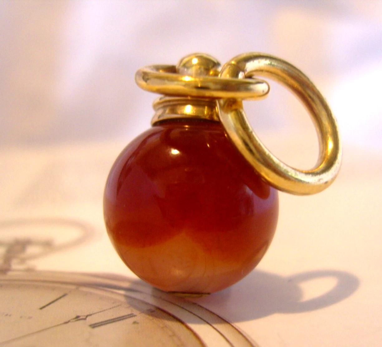 Pocket Watch Chain Fob Victorian 1890s Carnelian Stone Ball Antique Chunky Fob