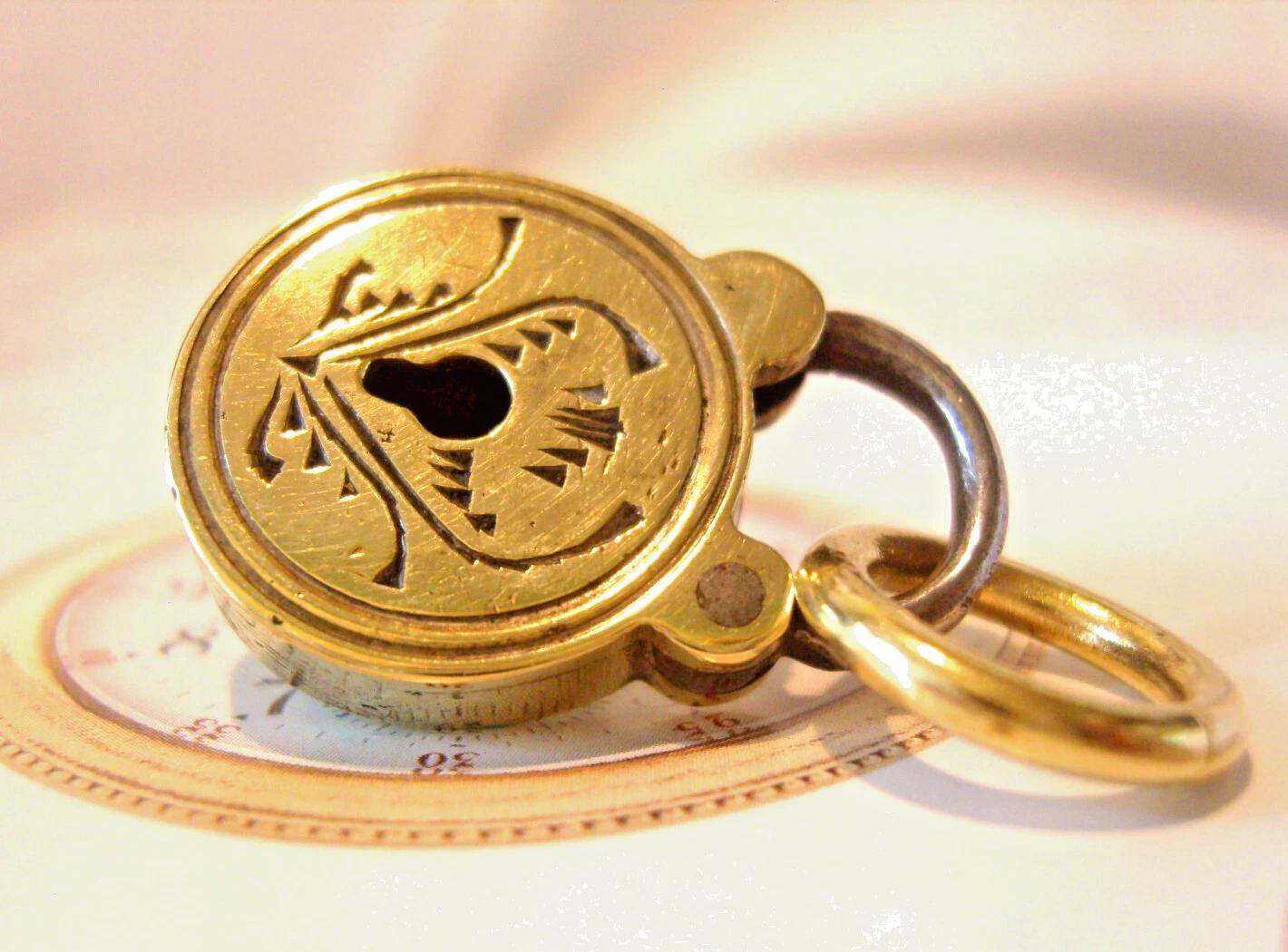 Pocket Watch Chain Fob Victorian Chunky Little Brass 1890s Antique Padlock