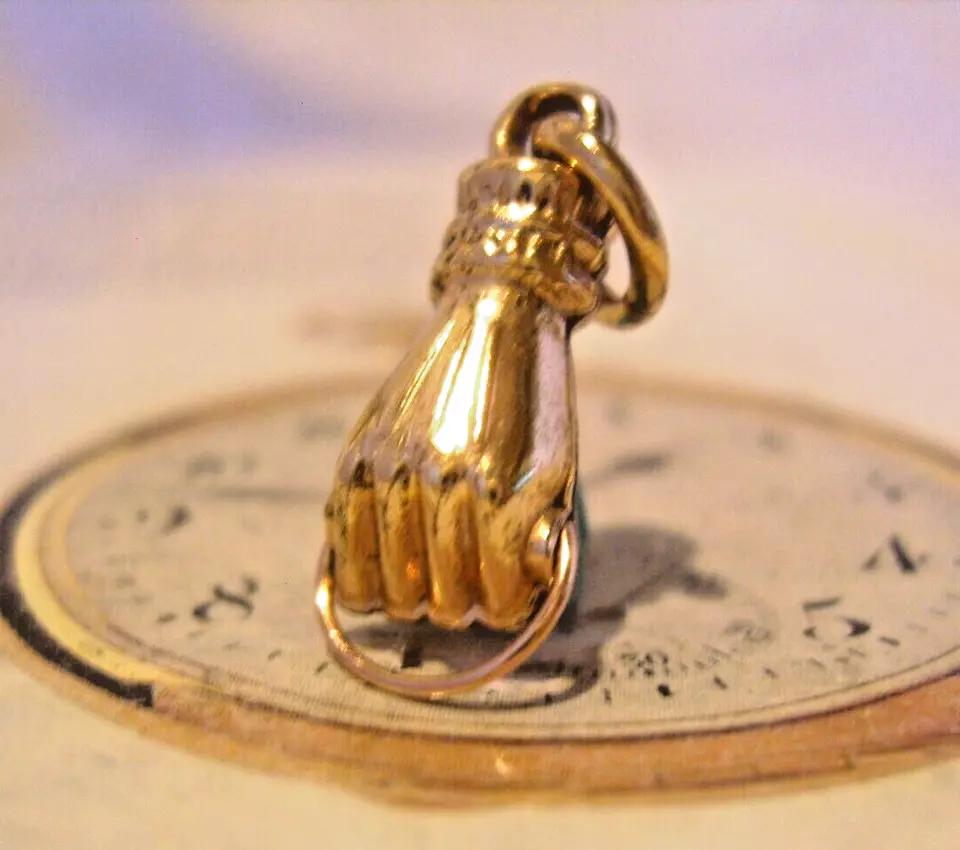 Pocket Watch Chain Fob Victorian Figura Fist 10ct Rose Gold Filled 1890 Antique