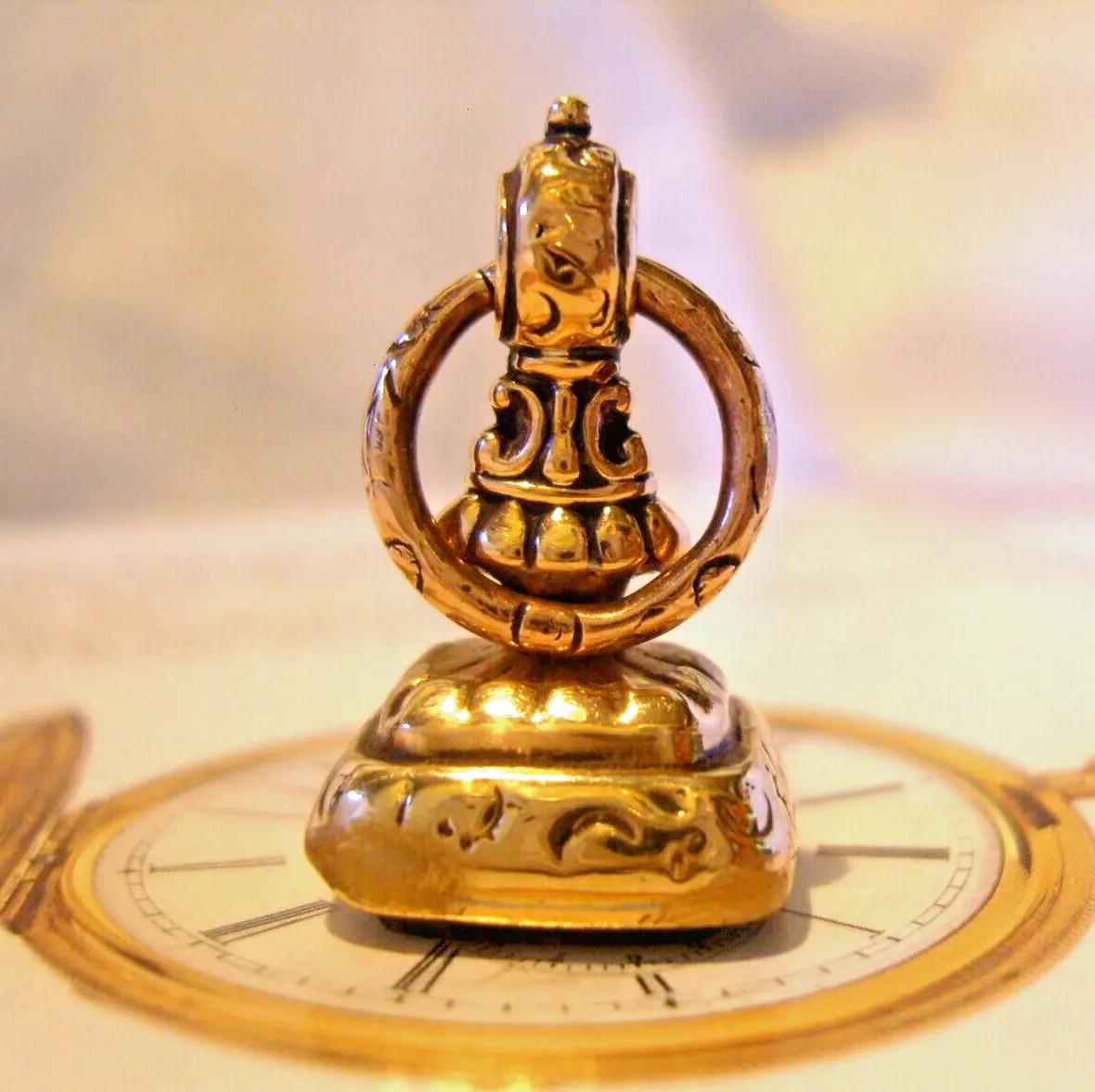 Pocket Watch Chain Fob Victorian Rose Gilt & Green Glass Large 1890s Fob