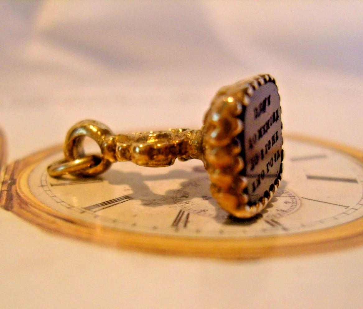 Pocket Watch Chain Fob Victorian Rose Gilt "Tho Lost To Sight Memory Dear"
