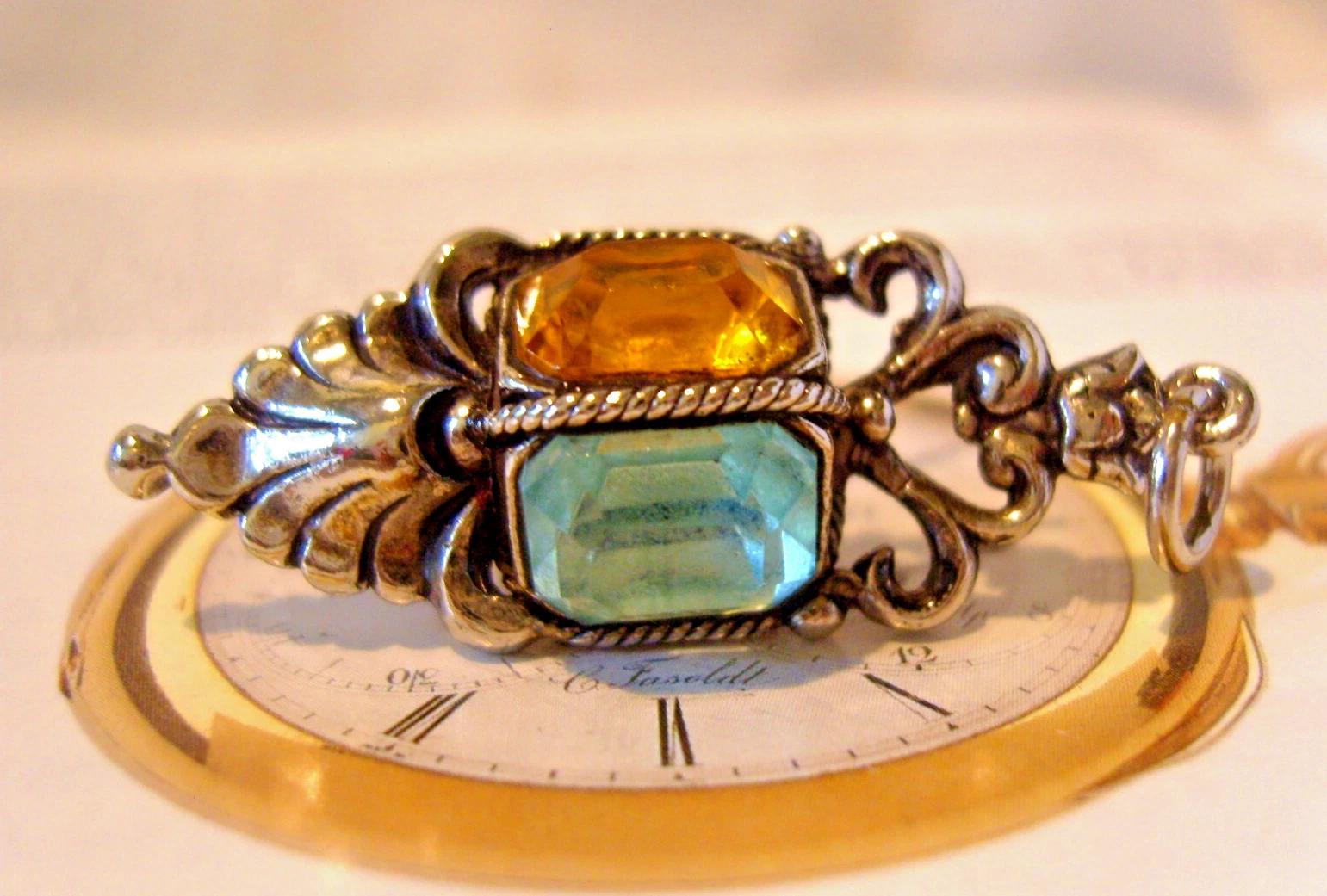 Pocket Watch Chain Fob Victorian Silver Chrome & Glass Large 1890s Lantern Fob
