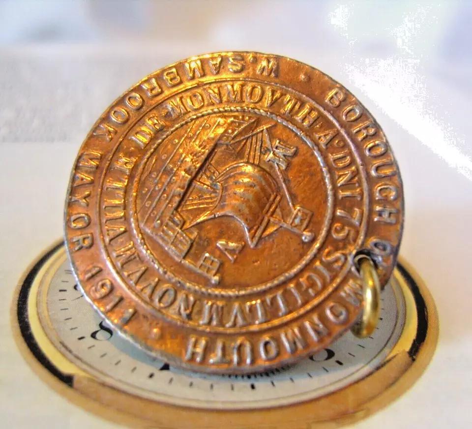 Pocket Watch Chain King George Coin Fob Monmouth Welsh Commemorative Fob 1911