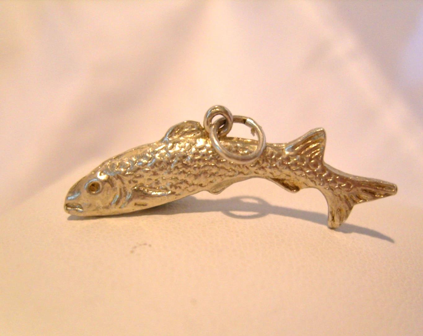 Vintage solid 925 silver (professionally XRF tested), highly detailed three dimensional large leaping salmon pendant or pocket watch chain fob.