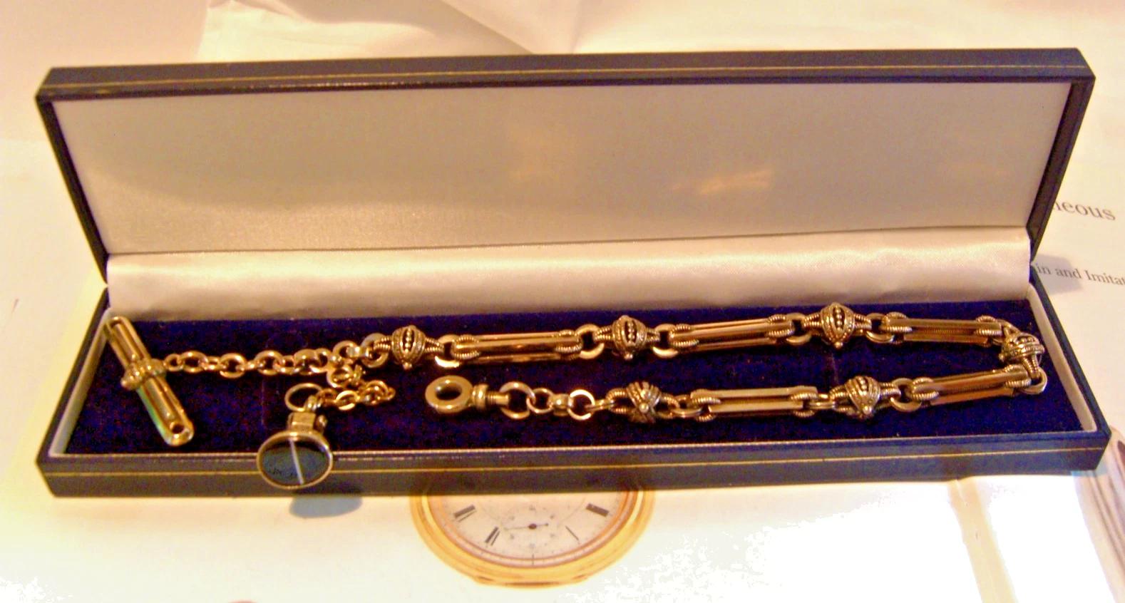 riversidemaximus23 has clarified that the Pocket Watch Chain Victorian 1867 Big Chunky 12ct Gold Filled Albert T Bar & Fob (LA559904) is genuinely of the period declared with the date/period of manufacture being 1867
