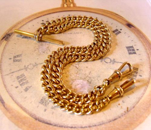 Pocket Watch Chain Victorian 1890s Huge Brass Antique Double Albert & T Bar 40.1 Grams