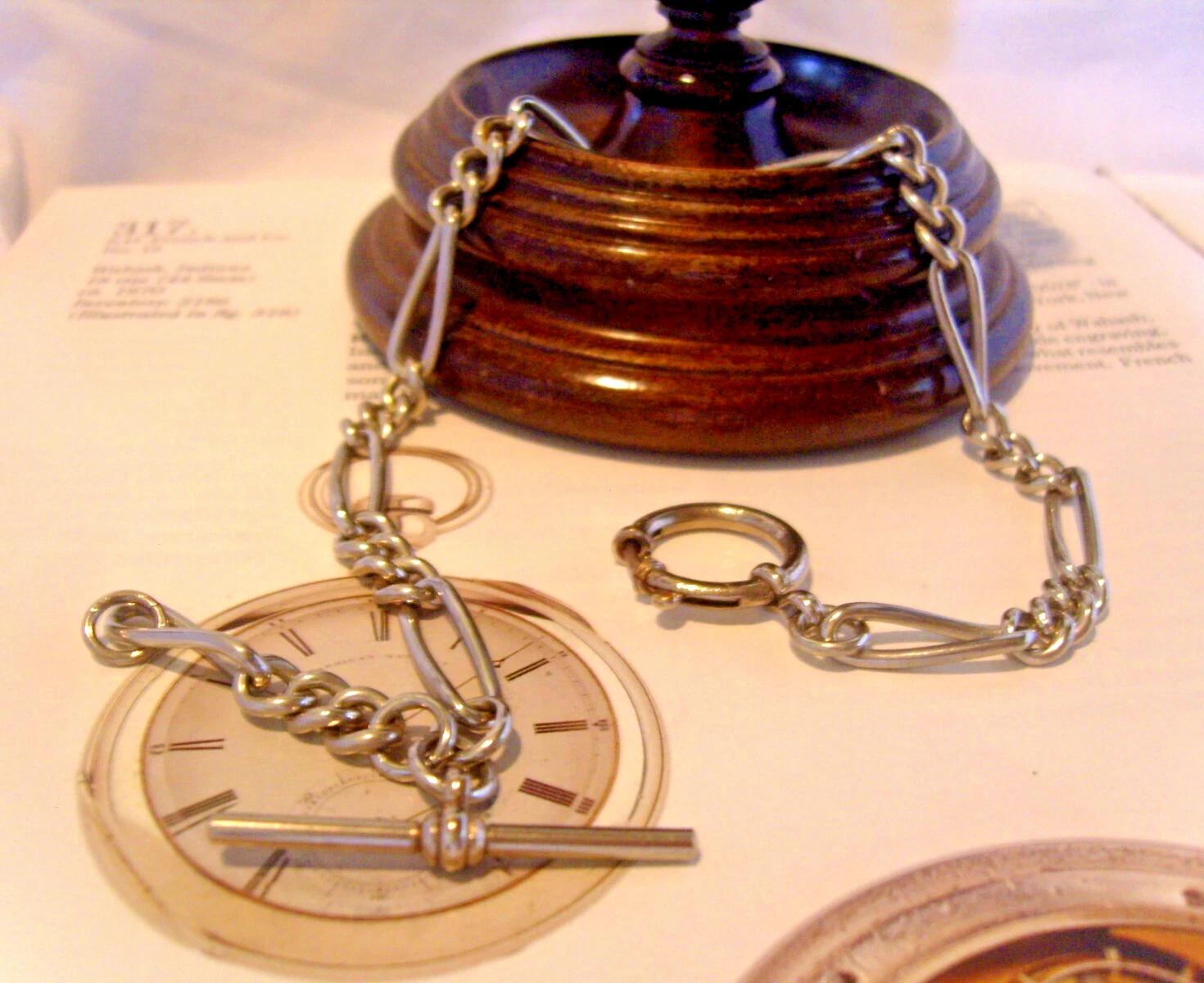 Pocket Watch Chain Vintage 1940s Big Silver Nickel Figaro Lik Albert With T Bar
