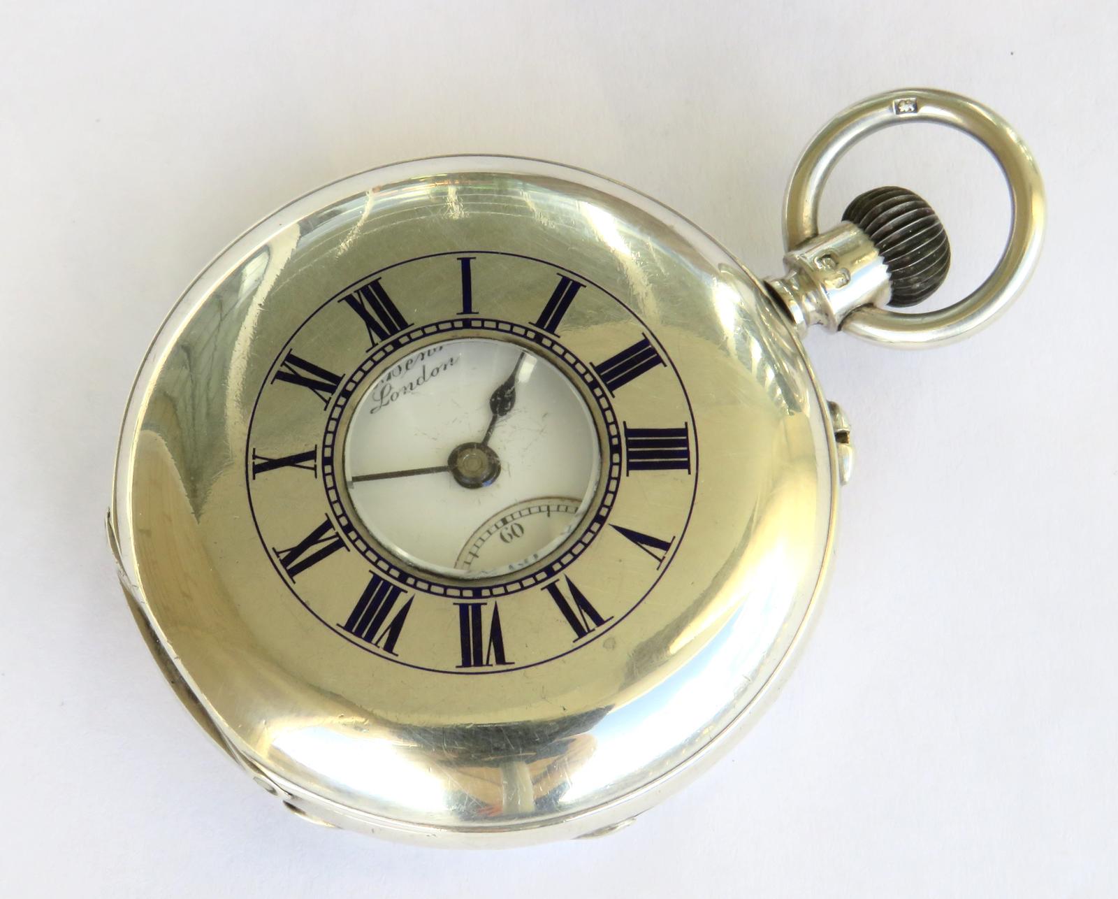 Pocket Watch : J W Benson ‘the Bank’ Silver Half Hunter Pocket Watch