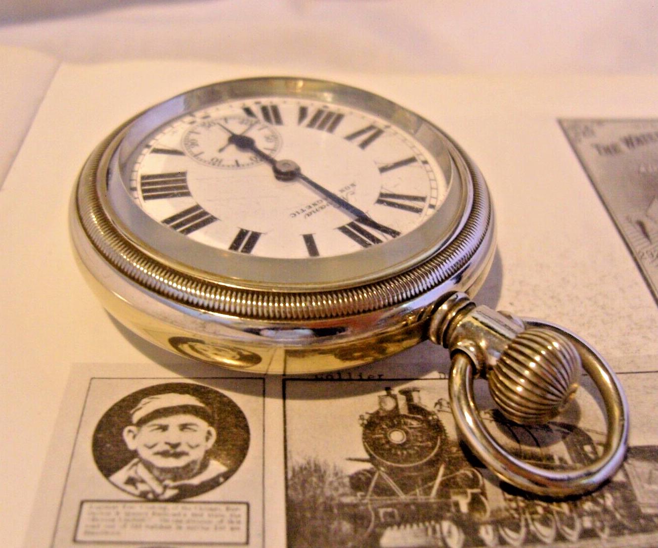 Pocket Watch Railway Type 1920s Antique Nirvana Swiss 15j Big Silverore Case FWO