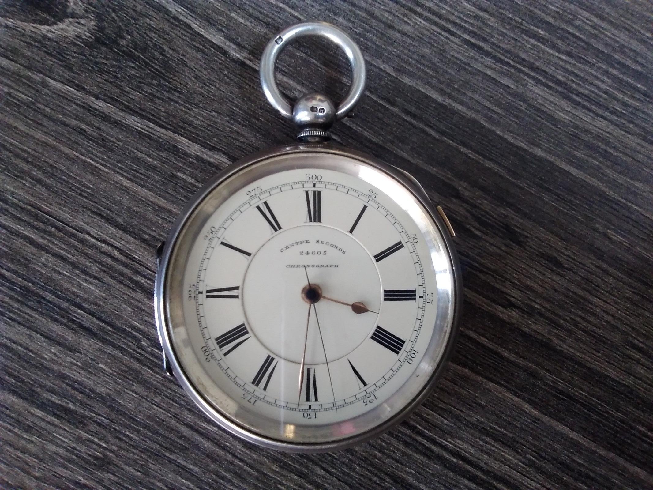 Pocket Watch Silver Chester 1893 Centre Seconds Chronograph