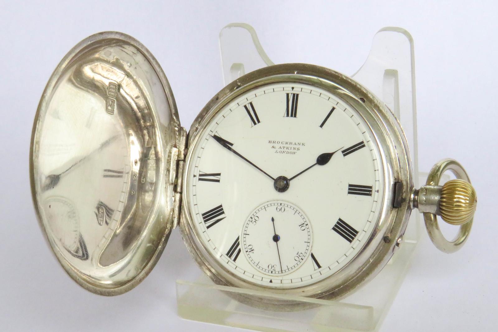 Pocket Watch: Silver Hunter Pocket Watch, Brockbank & Atkins