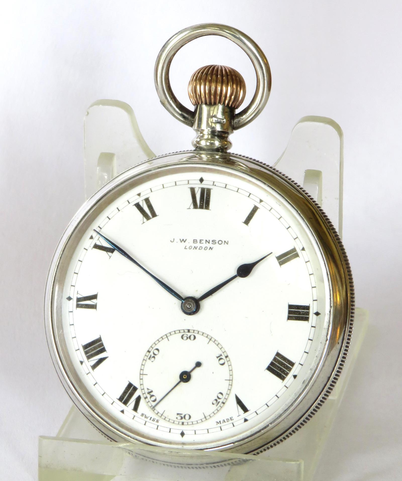 Pocket Watch : Silver J W Benson Pocket Watch, 1905
