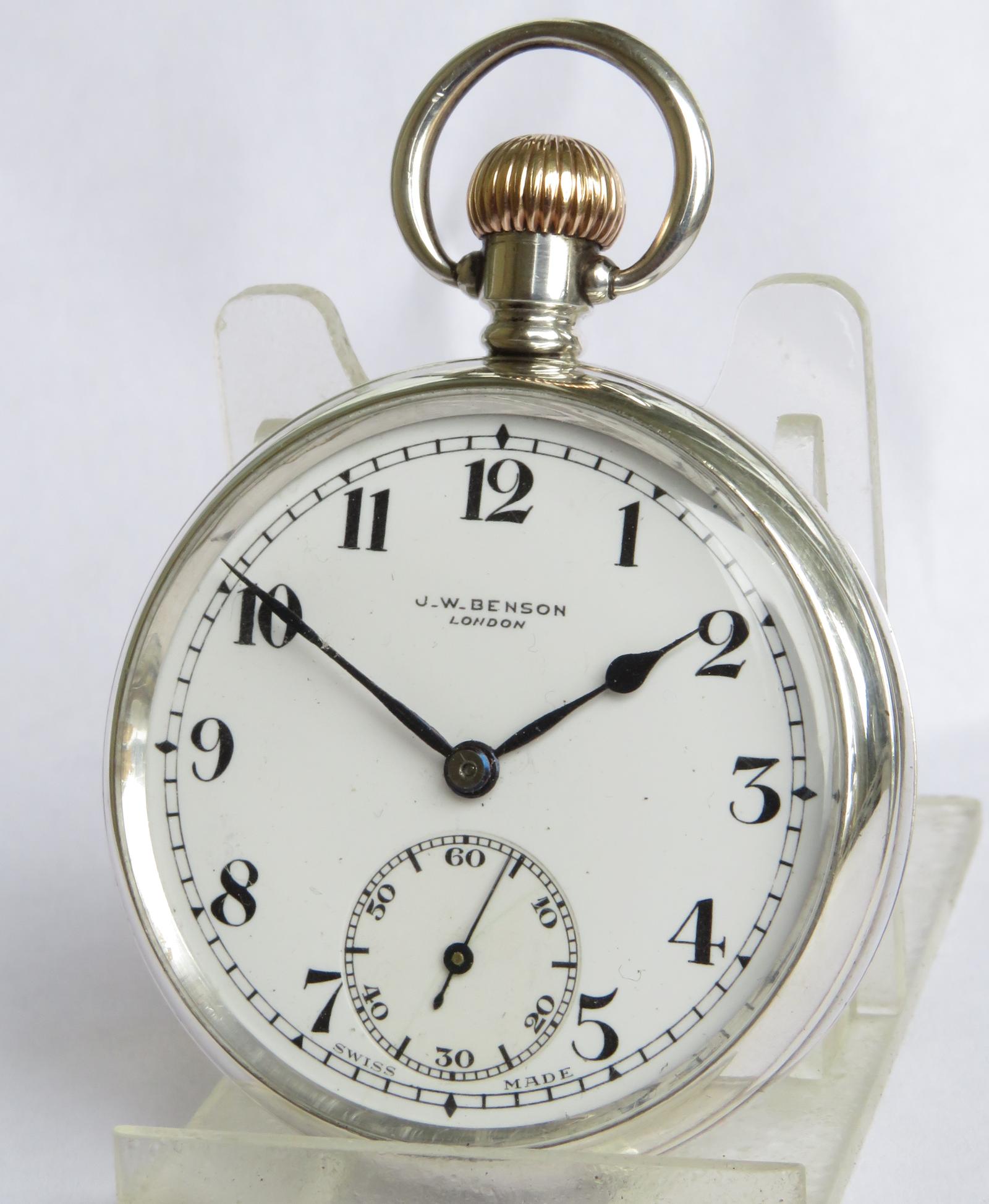 Pocket Watch : Silver J W Benson Pocket Watch, 1913