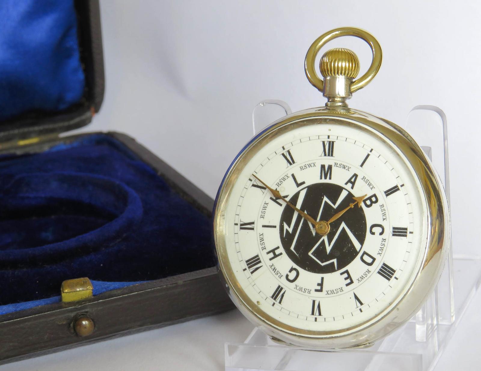The movement is protected by an inner hinged cover which has been engraved, ‘Six prize medals, J N Masters Ltd, Rye, Sussex’. In 1869, Masters took over a watch making business, and in 1896 J N Masters Ltd was formed. Founded by John Neve Masters in 1896, the company sold its own English-made watches, as well as imported Swiss movements such as the example we have here.