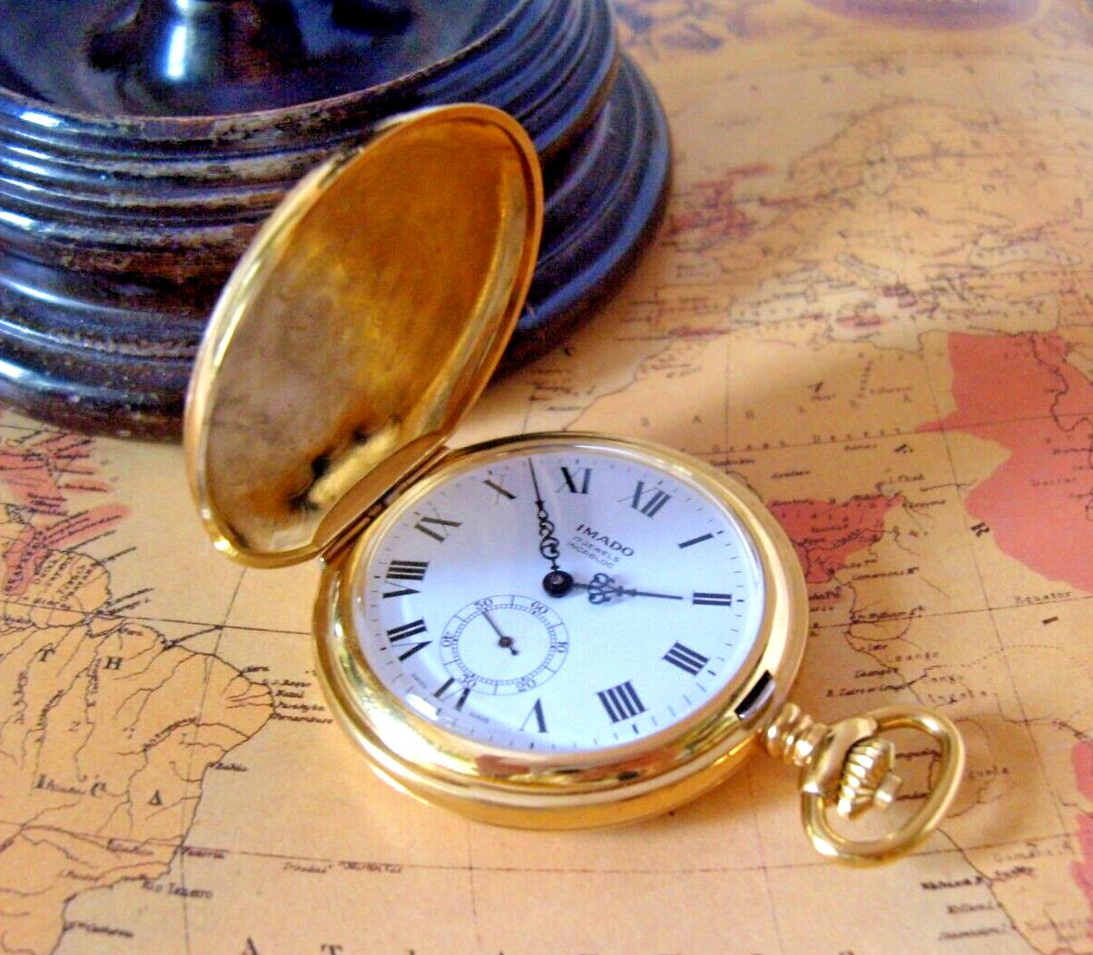 Pocket Watch Swiss Imado 17 Jewel 12ct Gold Plated 1970s Vintage Full Hunter FWO