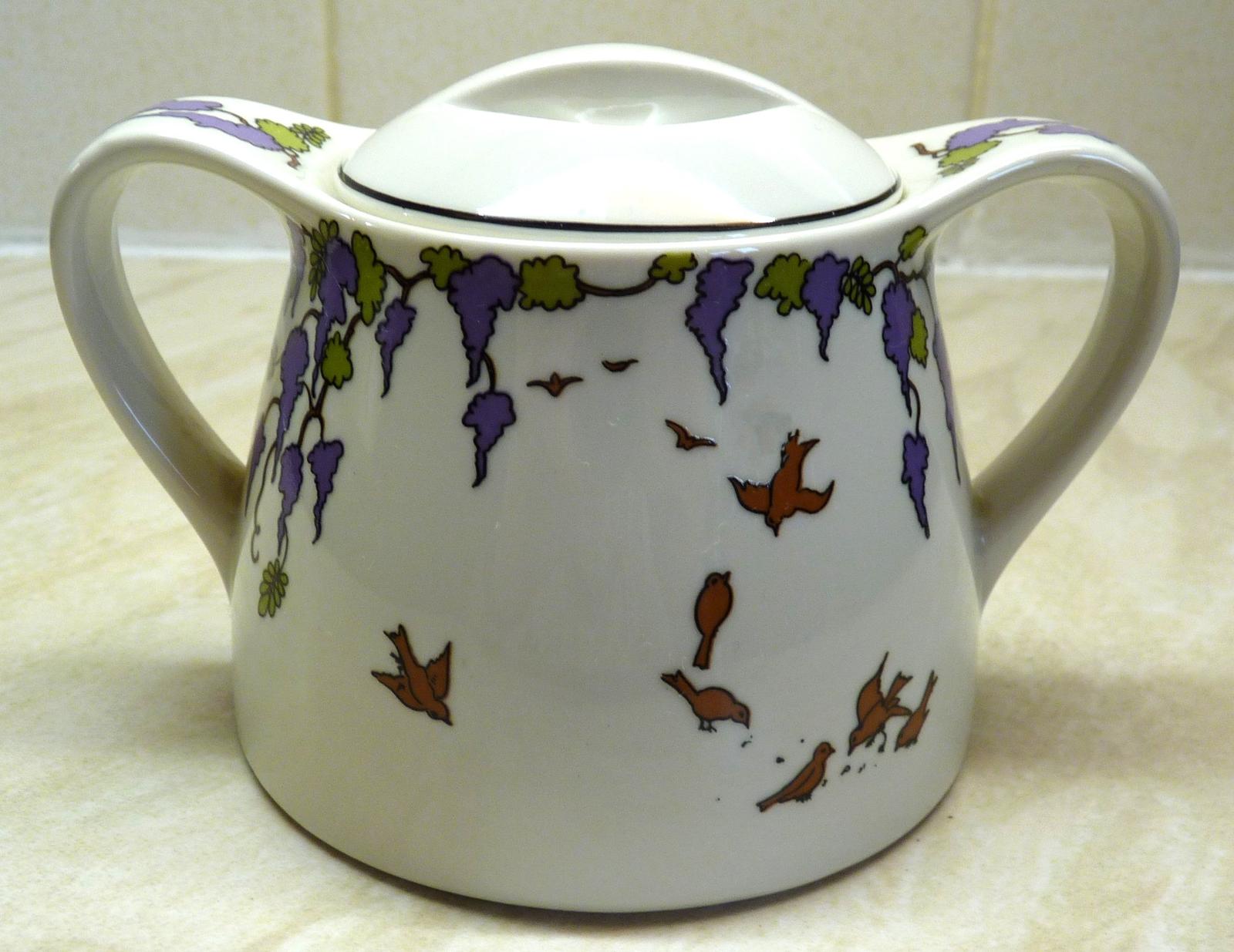 Porcelain China: A Vogue Art Nouveau Collection Porcelain Sugar Bowl by Villeroy & Boch, from the Renown "Design 1900" Tableware Series