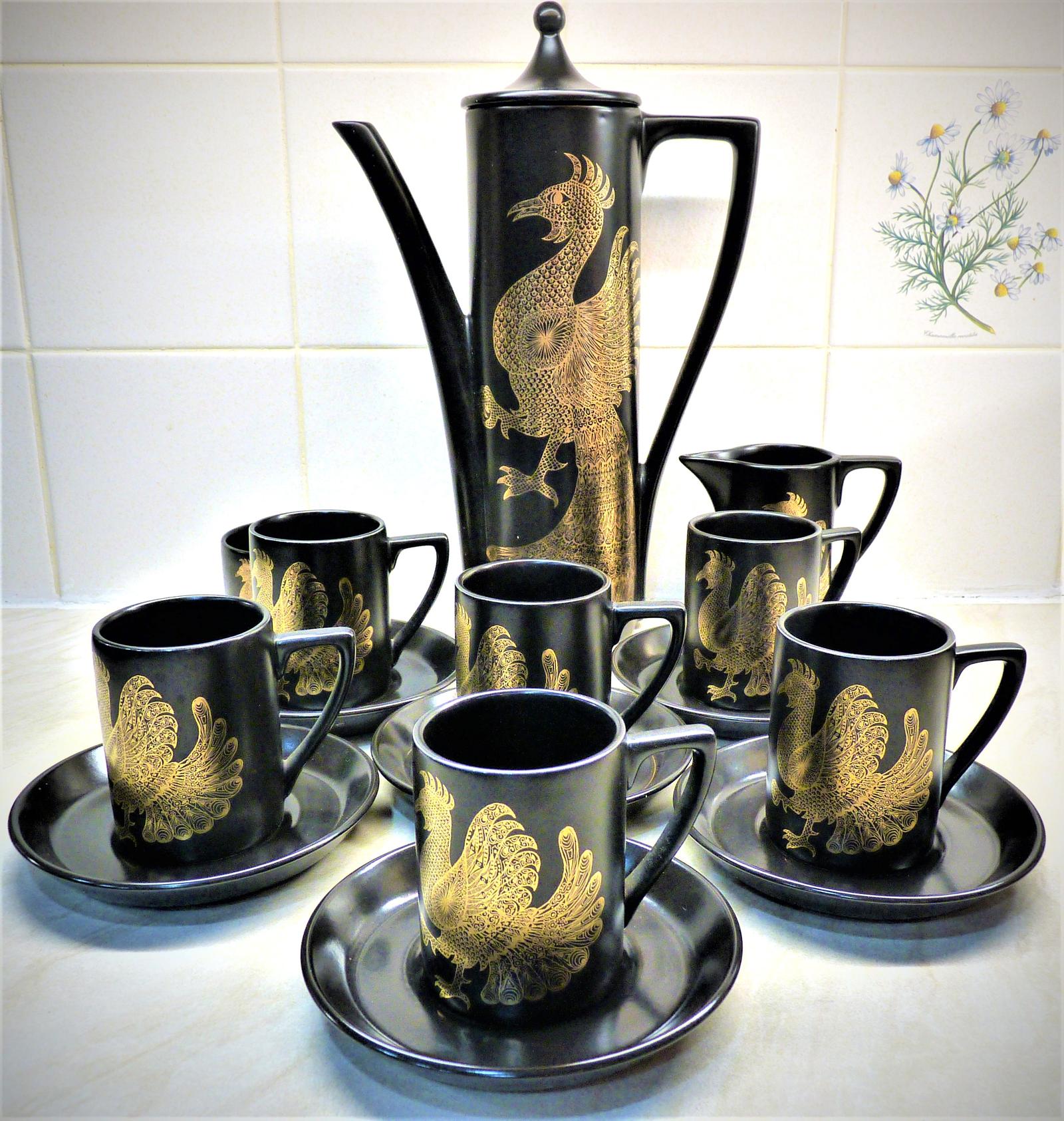 Porcelain Coffee Set: Stunning Porcelain Coffee Set by Famous Maker Portmeirion, From Their Phoenix Pattern