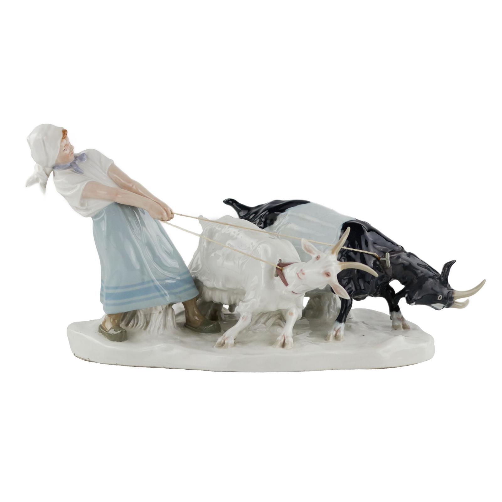 Porcelain composition Shepherdess with goats. Pilz, Otto. Meissen. 1850-1924.