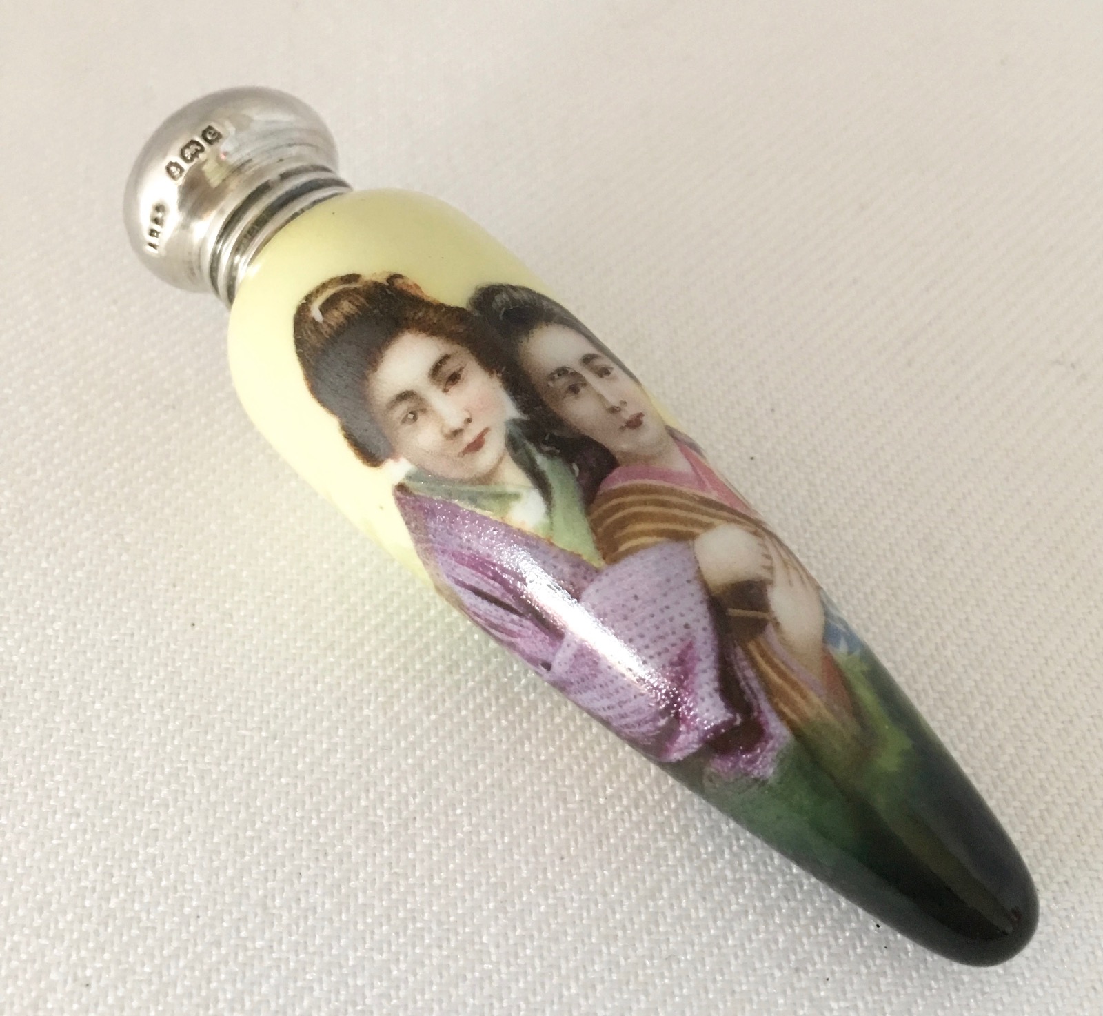 Porcelain Enamelled Perfume Bottle with Silver Top