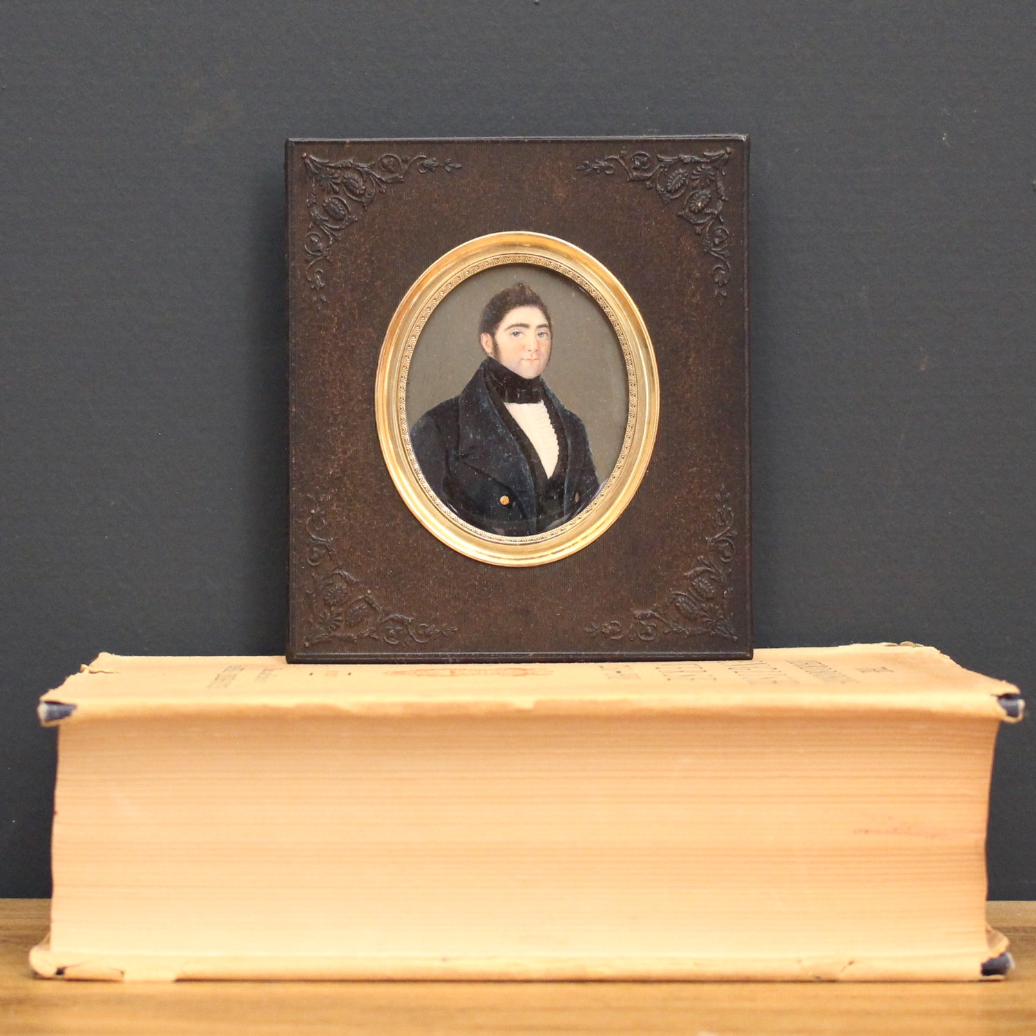Portrait Miniature of early-Victorian Gentleman, Original Vintage Painting